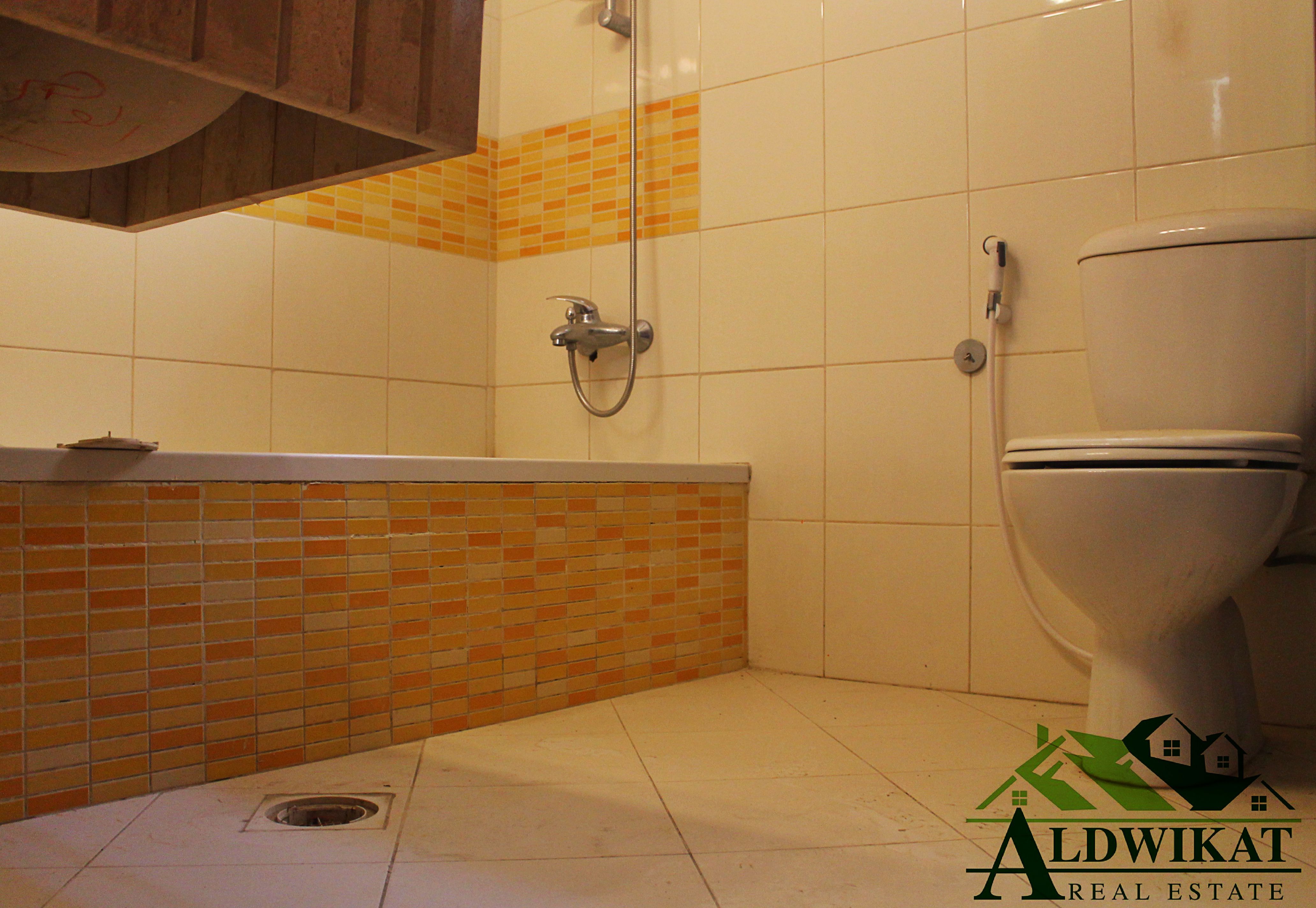 الارضي : صالون + معيشة + 2 نوم + حمام + مطبخ .