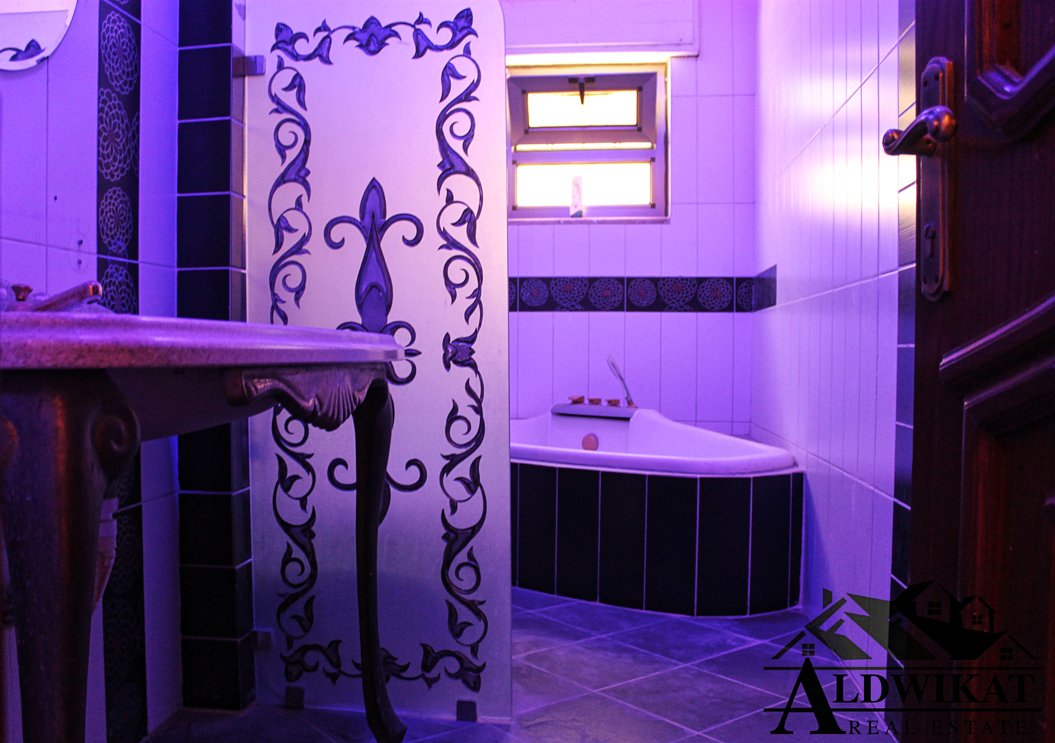 مكيفات 9 - جاكوزي - فاير بليس - ديكورات خشبية - ديكورات جبصين - اباجورات كهرباء - ارضيات رخام اورينتال + جرانيت - تدقئة غاز - انضمة حماية كاميرات - انارة سبوت لايت - دهان تطبيع - كراج سيارة خاص - شلال - نافورة - نهر - ترسات خارجية 2 - حديقة 300م - ابواب كراج كهرباء - مضلات - كراج 8 سيارات - بئر ماء 30م - 3 مداخل.