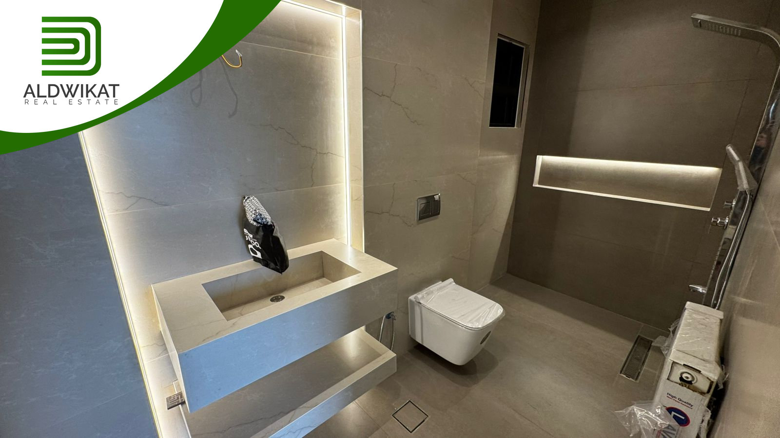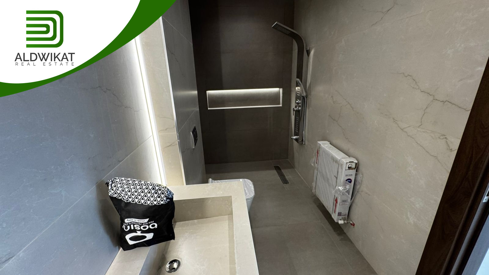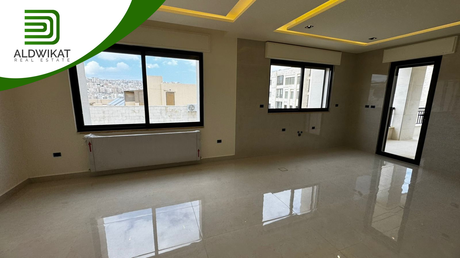التشطيبات سوبر ديلوكس - نوع الارضيات بورسلان - التدفئة رديترات غاز - اباجورات كهرباء -