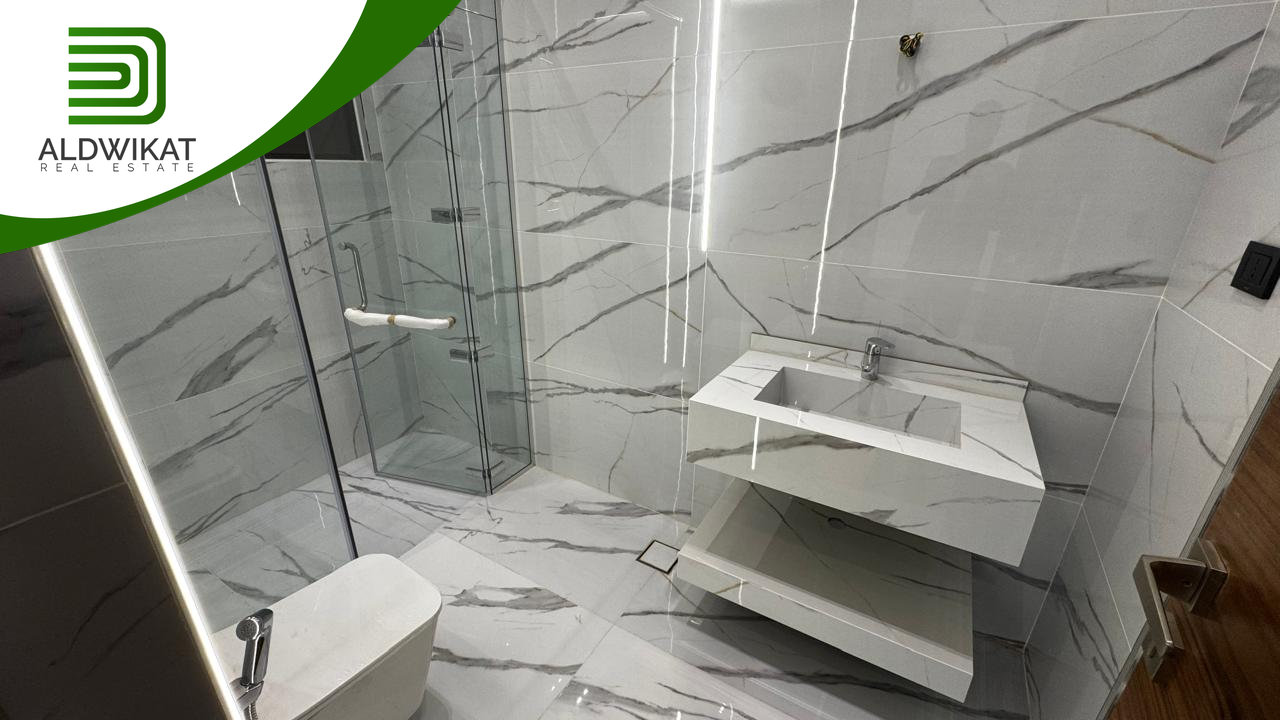 التشطيبات سوبر ديلوكس - نوع الارضيات بورسلان - التدفئة رديترات غاز - اباجورات كهرباء -