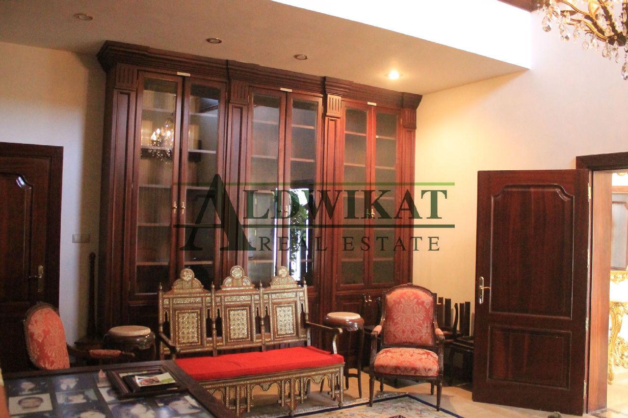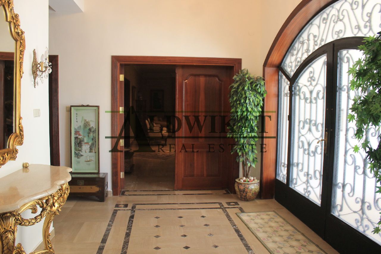 <p>Details: Main rooms (4) - Salons (4) - Bedrooms (5) Master (4) (Suites) - Living room (4) - Kitchen (2) - bathroom (7) - library - maid room - laundry room - Storeroom - Super Deluxe finishes - Garage No. 2 can accommodate 10 cars - Wall safes - Electric towers - Central heating - Adaptation units 10 - Spot lights - Gypsum and wooden decorations - Water well - Garden - Large gear - Number of entrances (3 ) - Intercom - Marble floors - Fireplace - Elevator - Jacuzzi - Special location - beautiful view - guard room.</p>