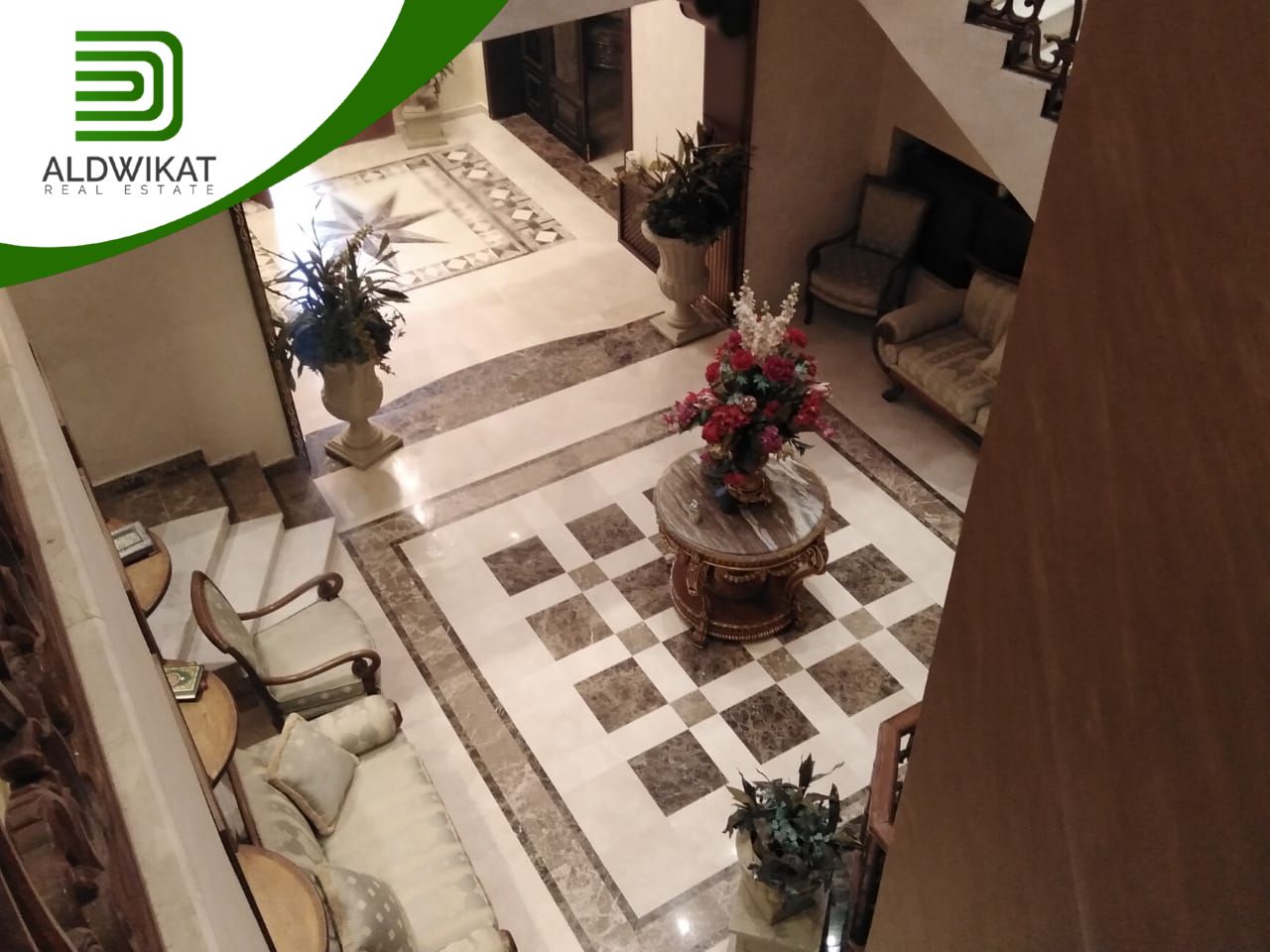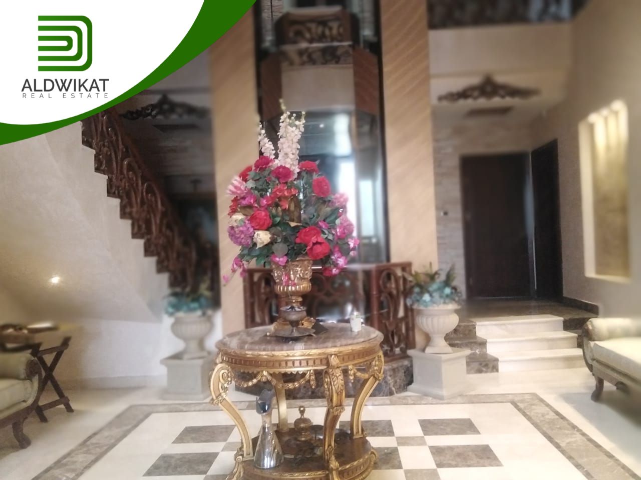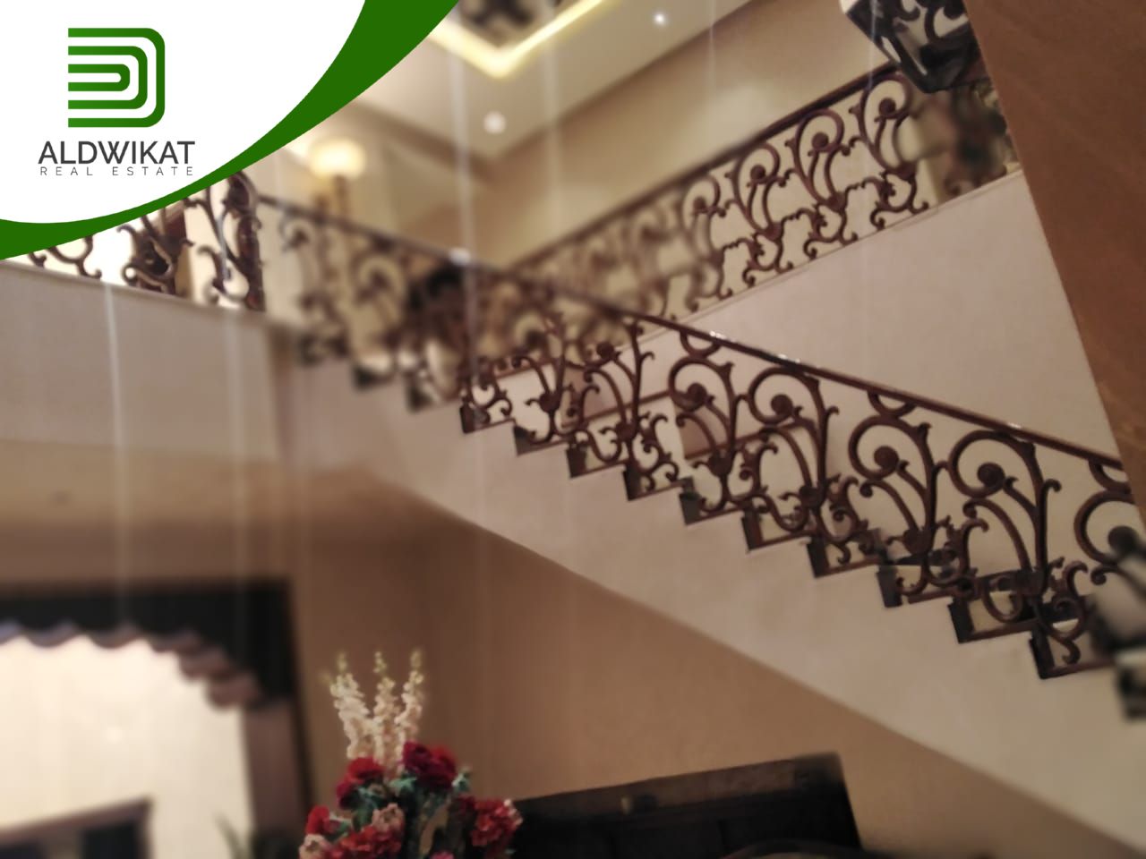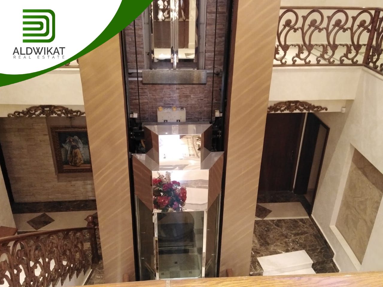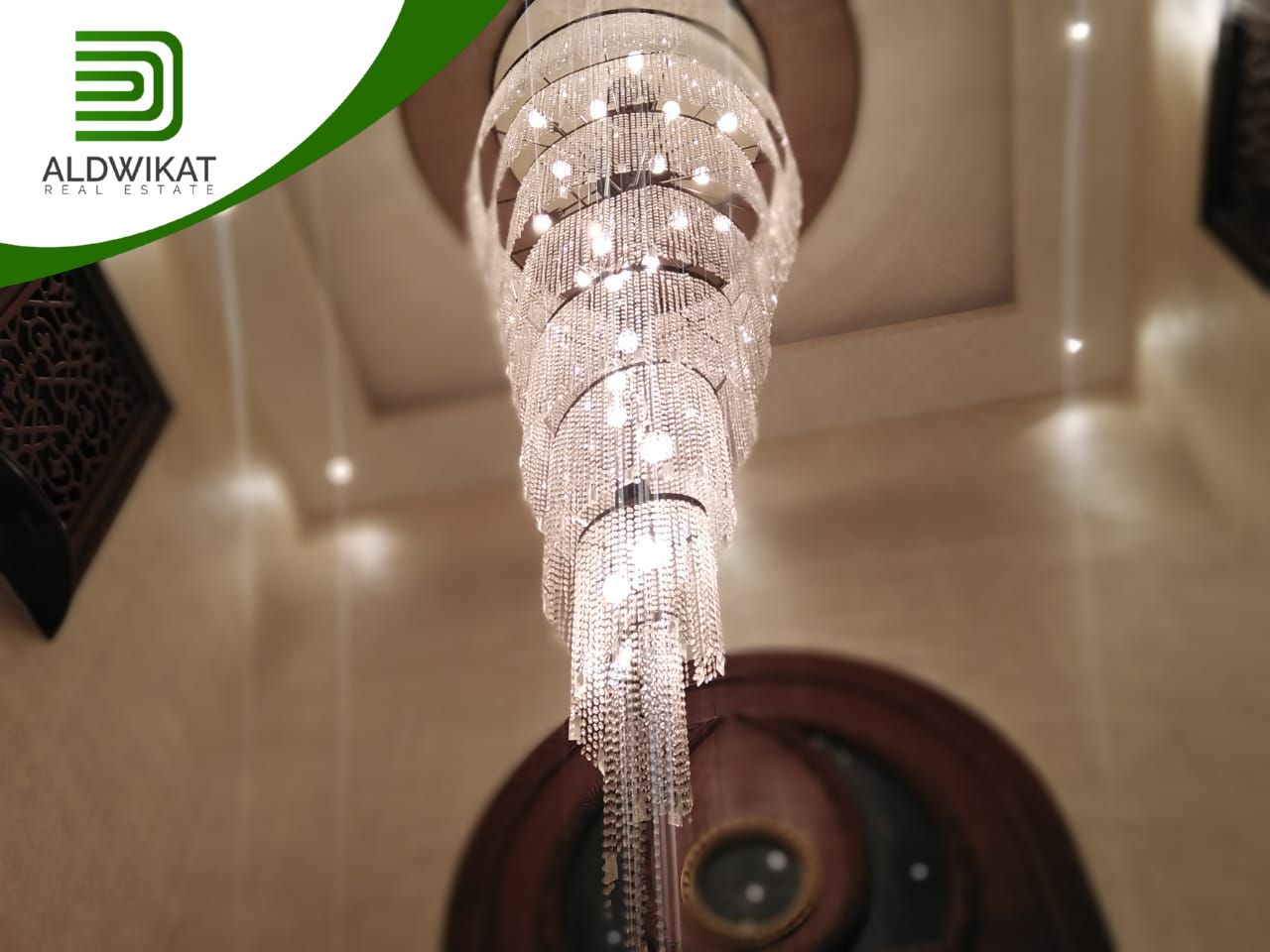 تشطيبات سوبر ديلوكس - ارضيات رخام - اباجورات كهربائية - 10 وحدات تكييف - تدفئة مركزية تحت البلاط بويلر - ديكورات جبصين و خشبية- انارة سبوت لايت و مخفية - انارة ثريات - Fire place - شاور بوكس - مصعد بانوراما داخلي - خزائن بالحائط - بئر ماء - باربيكيو خارجي - نوافير ماء - حدائق امامية جانبية و خلفية جمسلة - زجاج دبل - اطلالة عالية - منطقة هادئة - عدد المداخل 3 - غرفة حارس مع حمام .