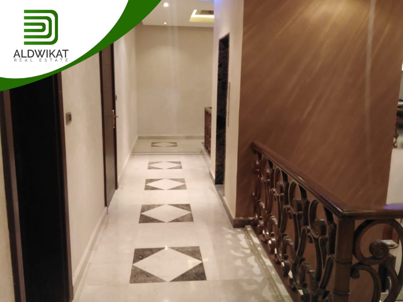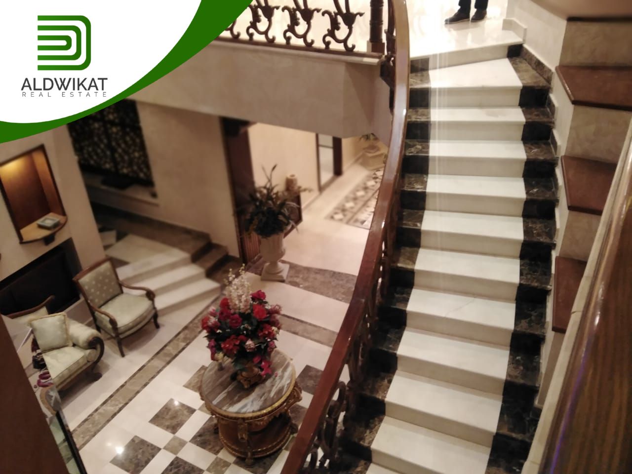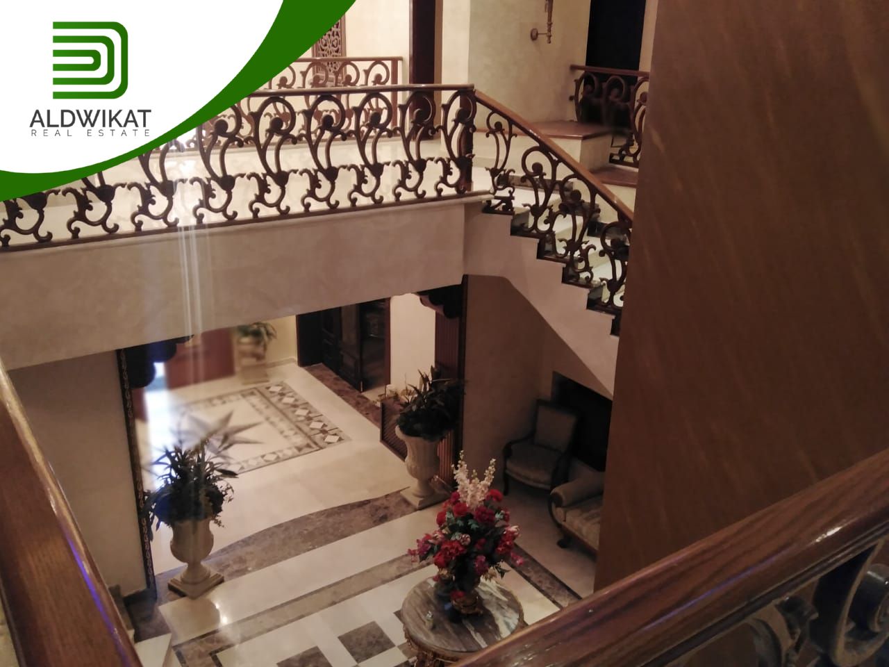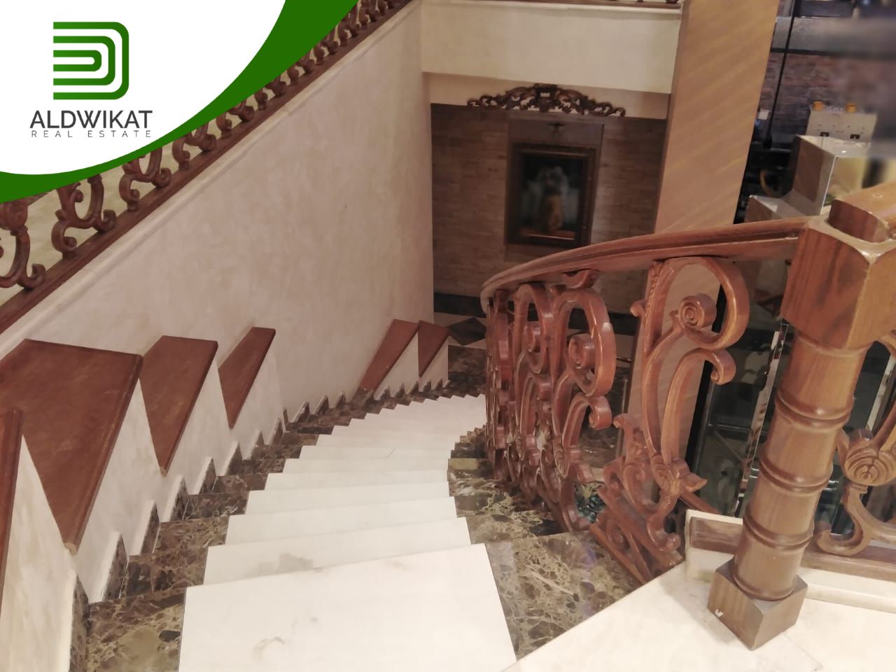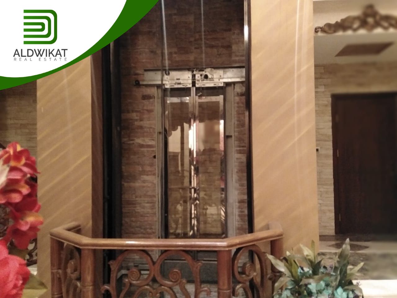 تشطيبات سوبر ديلوكس - ارضيات رخام - اباجورات كهربائية - 10 وحدات تكييف - تدفئة مركزية تحت البلاط بويلر - ديكورات جبصين و خشبية- انارة سبوت لايت و مخفية - انارة ثريات - Fire place - شاور بوكس - مصعد بانوراما داخلي - خزائن بالحائط - بئر ماء - باربيكيو خارجي - نوافير ماء - حدائق امامية جانبية و خلفية جمسلة - زجاج دبل - اطلالة عالية - منطقة هادئة - عدد المداخل 3 - غرفة حارس مع حمام .