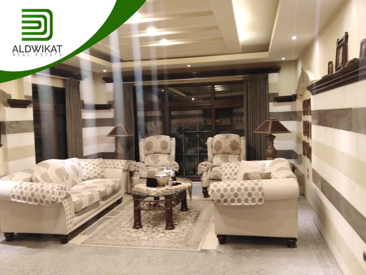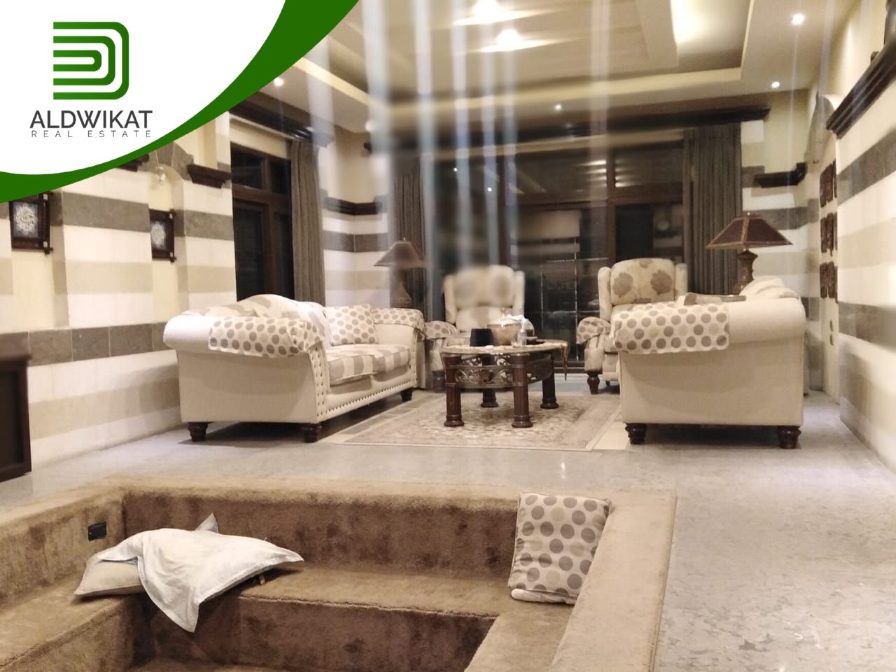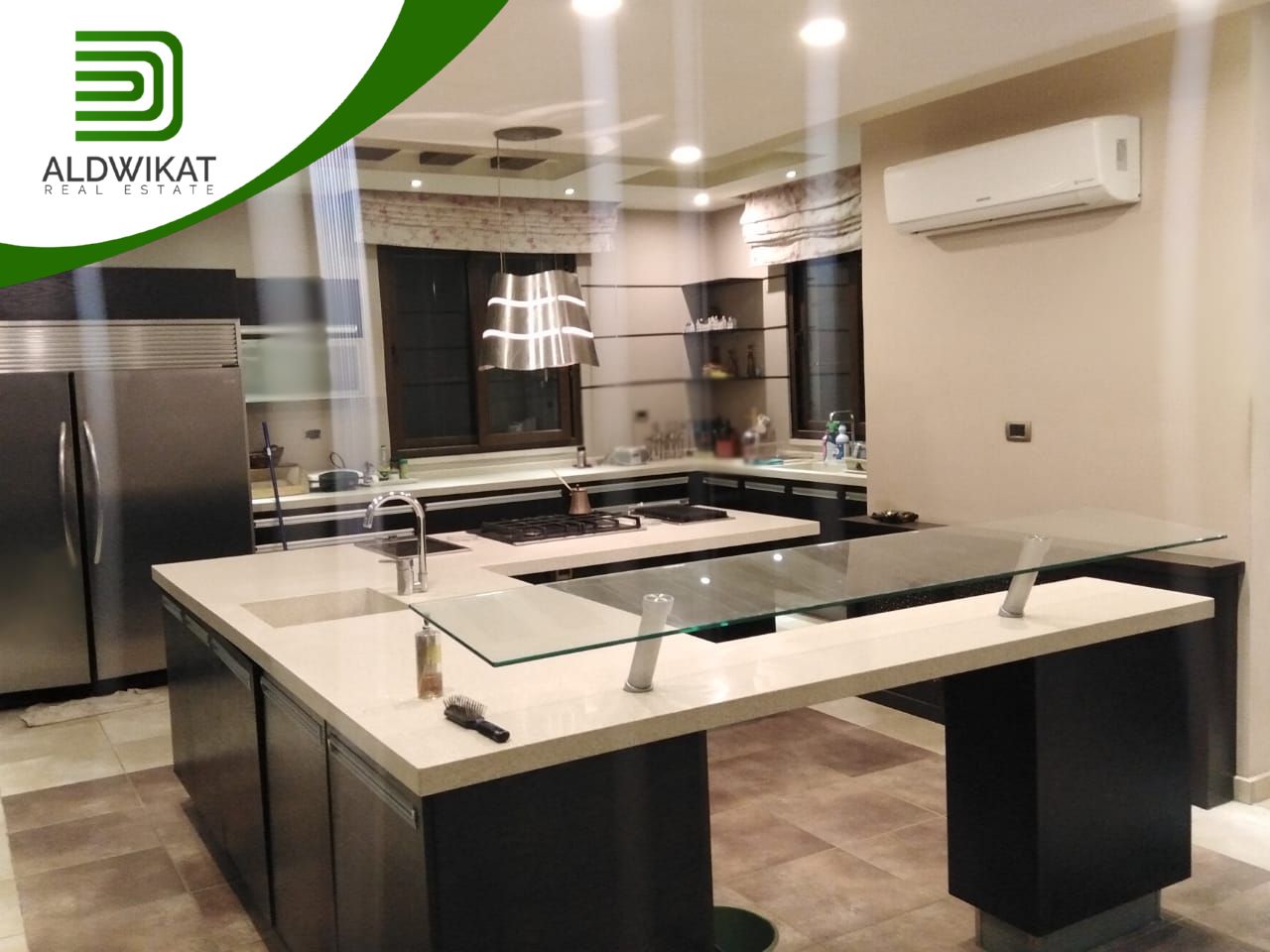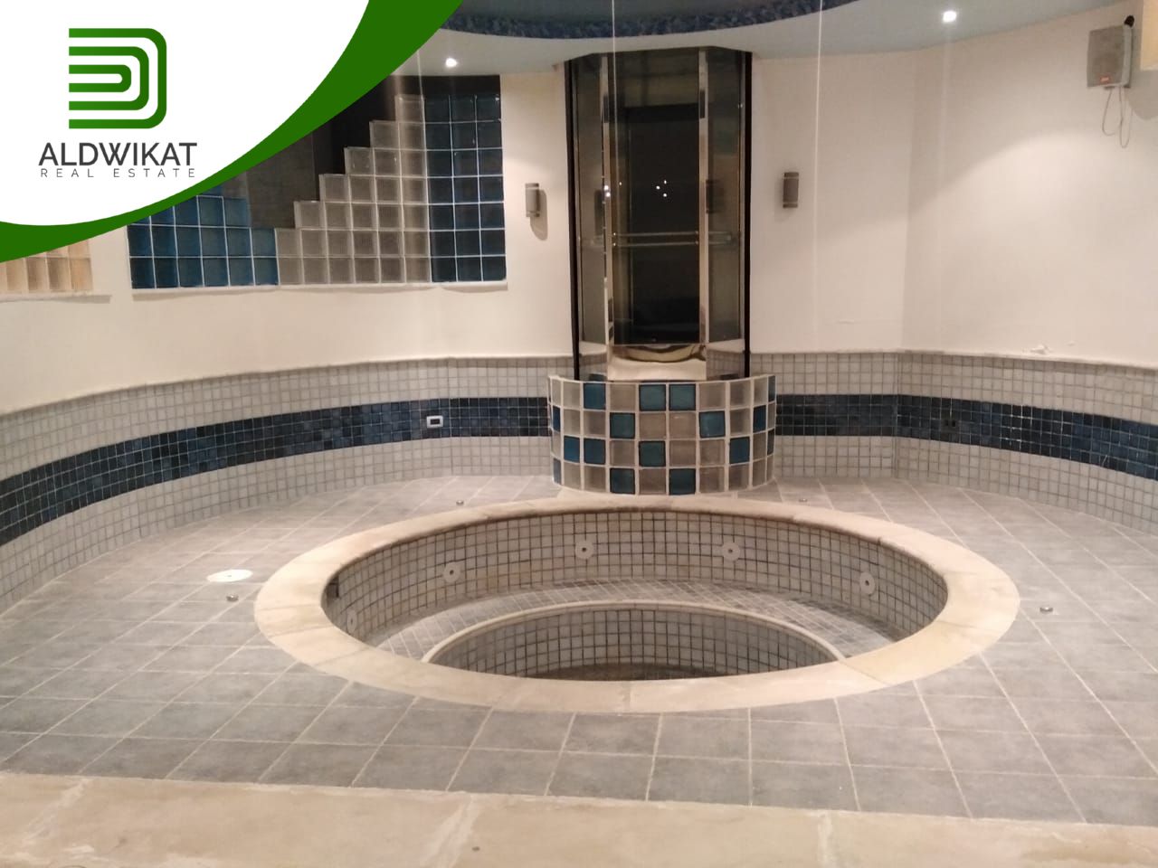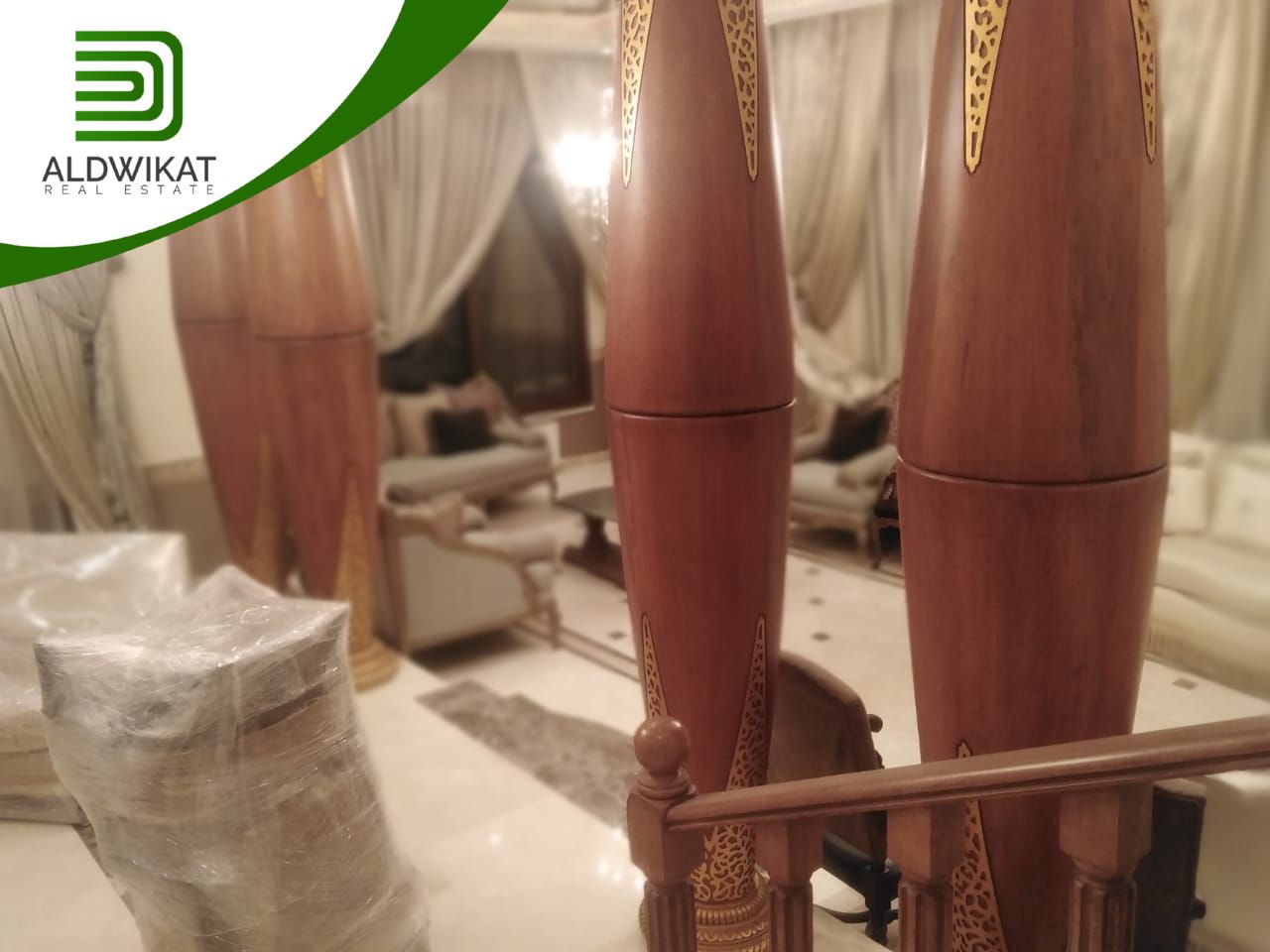 تشطيبات سوبر ديلوكس - ارضيات رخام - اباجورات كهربائية - 10 وحدات تكييف - تدفئة مركزية تحت البلاط بويلر - ديكورات جبصين و خشبية- انارة سبوت لايت و مخفية - انارة ثريات - Fire place - شاور بوكس - مصعد بانوراما داخلي - خزائن بالحائط - بئر ماء - باربيكيو خارجي - نوافير ماء - حدائق امامية جانبية و خلفية جمسلة - زجاج دبل - اطلالة عالية - منطقة هادئة - عدد المداخل 3 - غرفة حارس مع حمام .