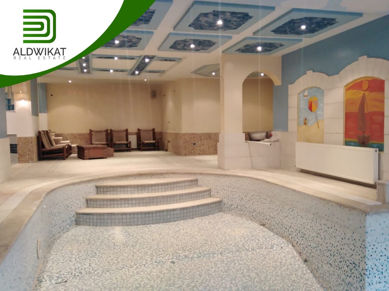 طابق التسوية : مسبح داخلي - جاكوزي - غرفة بخار - غرفة ساونا مع حمام - صالون - مطبخ خدمات - شاورات - مستودع - غرفة خادمة مع حمامها - غرفة غسيل
