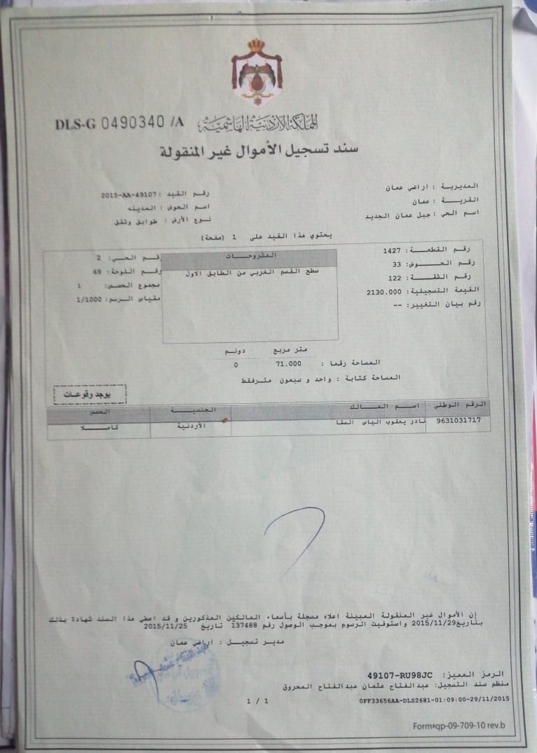 مجمع تجاري ذات موقع مميز مؤجر بدخل 70 الف دينار سنوي قابل للزيادة ، المجمع مكون من طابقين مع حق الاعتلاء طابقين وروف مما يساهم في زيادة الدخل السنوي 40% ، مؤجر الى مطاعم مرموقة عقود طويلة .