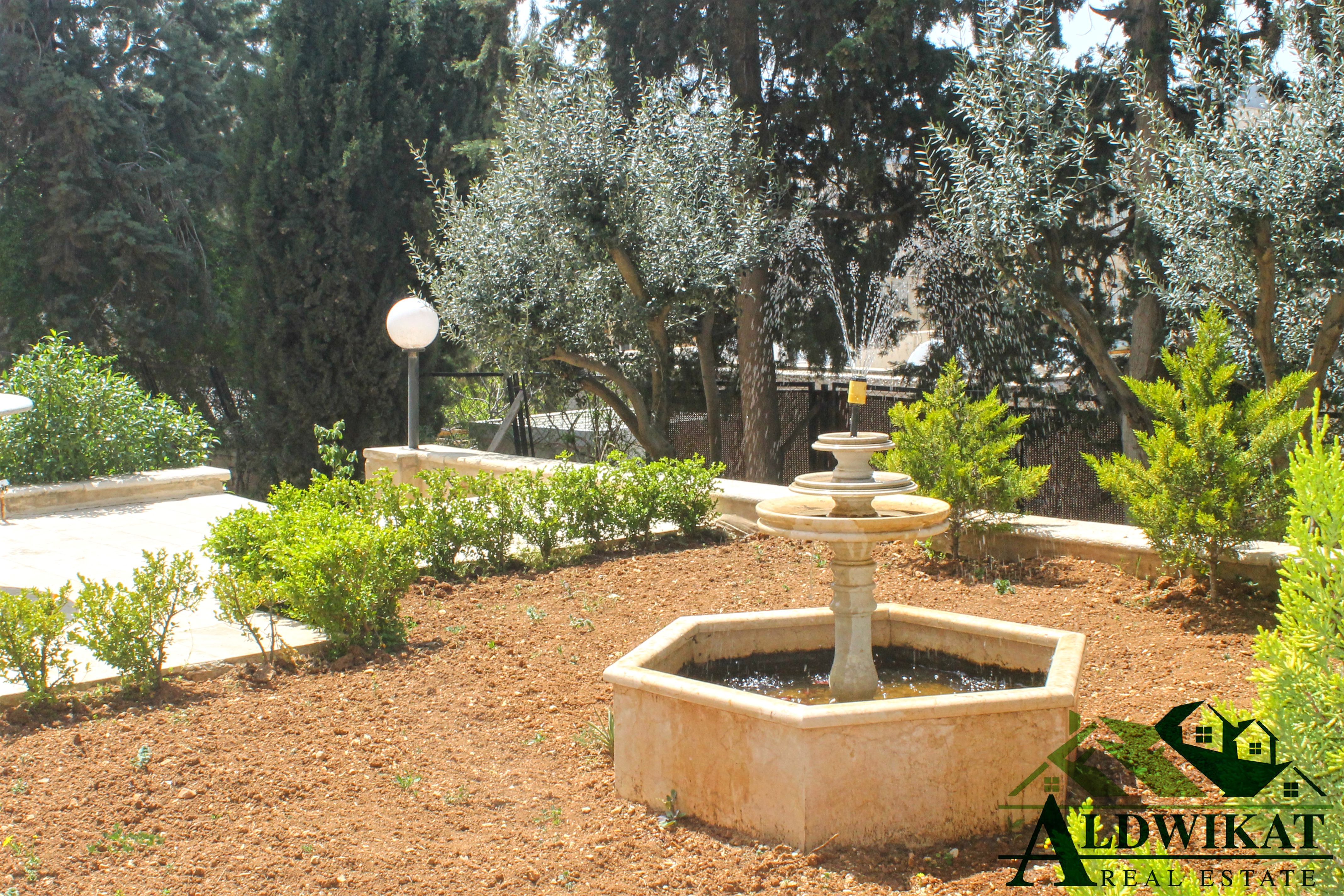 الطابق الارضي : غرفة نوم + مخزن + غرفة خادمه + معيشه + صاله + صالون + 3 مداخل + حمام + ترسات : المساحه 764 م + نافوره