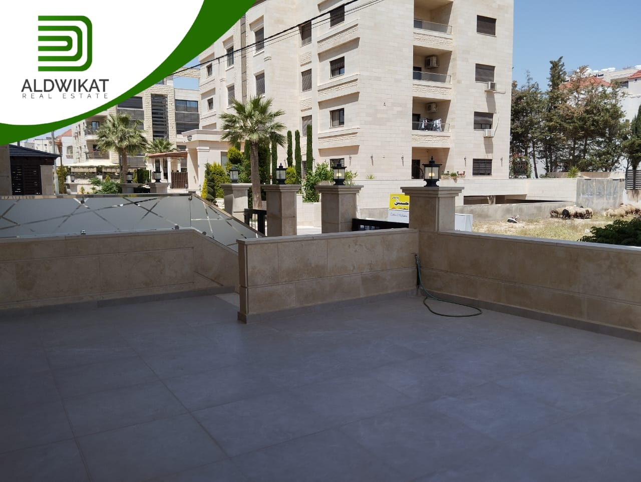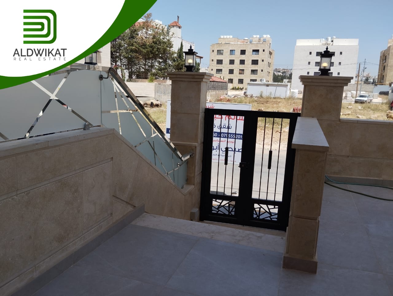 شقة طابقية للبيع في مرج الحمام طابق ارضي مساحة البناء 205 م مساحة الترس 50 م