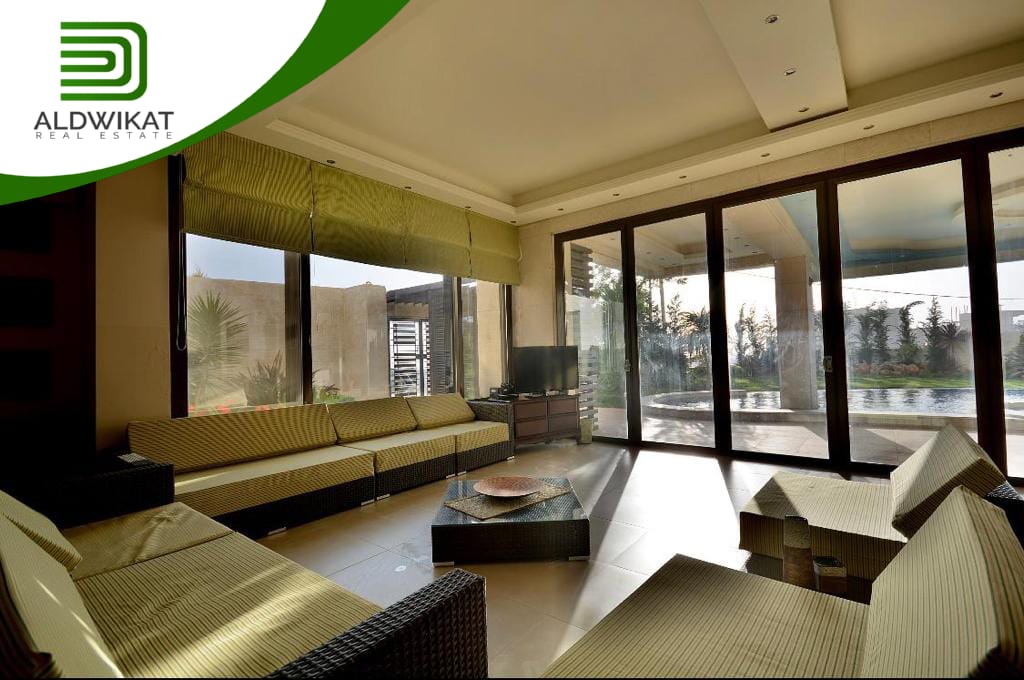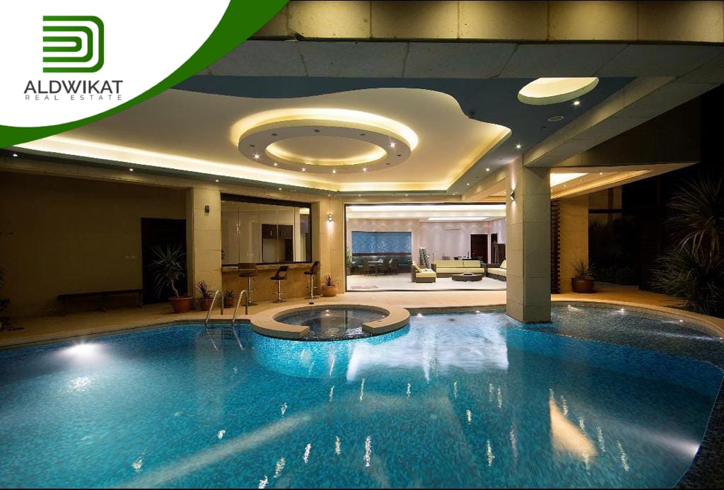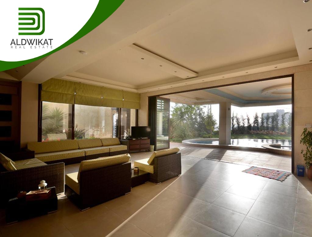 التشطيبات سوبر ديلوكس - نوع الارضيات رخام - تدفئة - تكييف - حديقة - كراج خاص - مصعد - موقد - اطلالة - مسبح