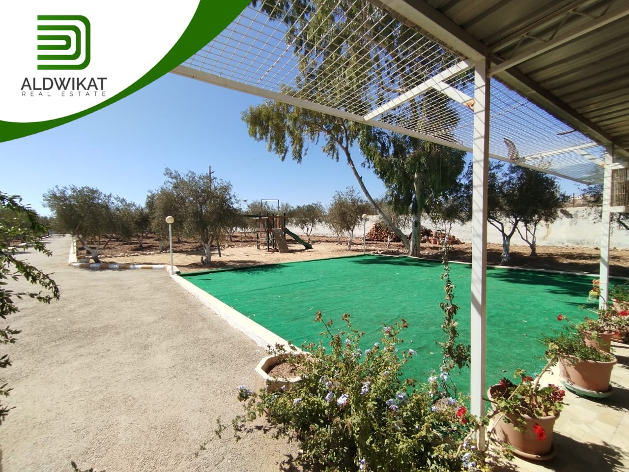 مزرعة للبيع في ام العمد / البركة مساحة الارض 5 دونم ومساحة البناء 200م ومساحة الحديقة 4500م ومساحة الترس 200م على شارعين أرض مستوية واصل خدمات