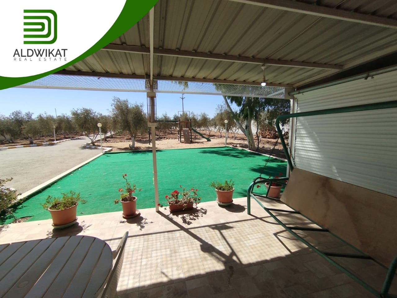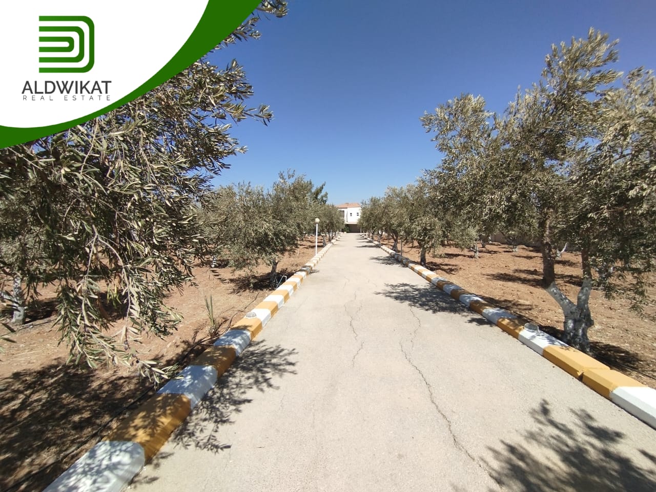 مزروعة شجر زيتون 140 شجره ولوزيات ومسوره بالكامل مع بوابة + غرفة حارس : غرفة نوم - مطبخ - حمام