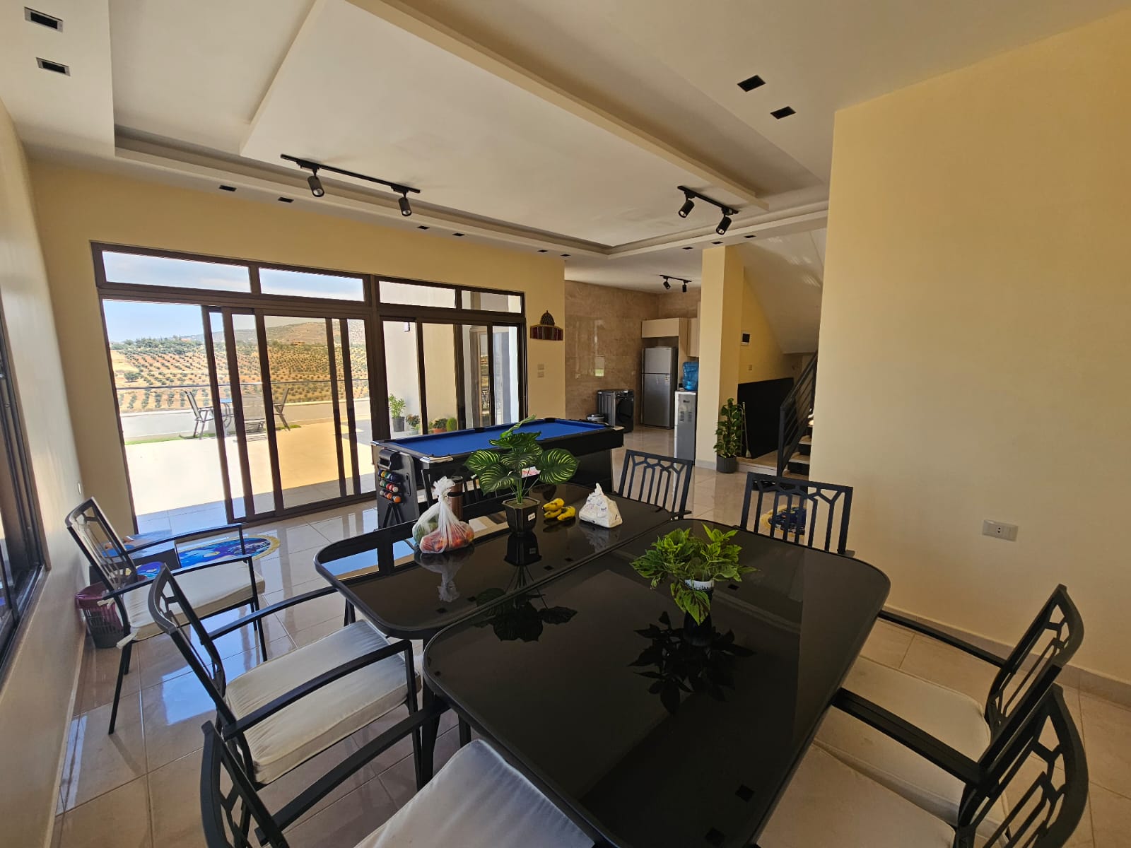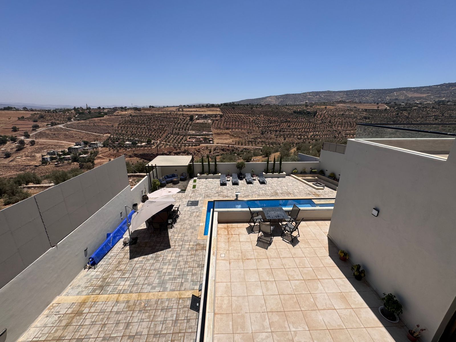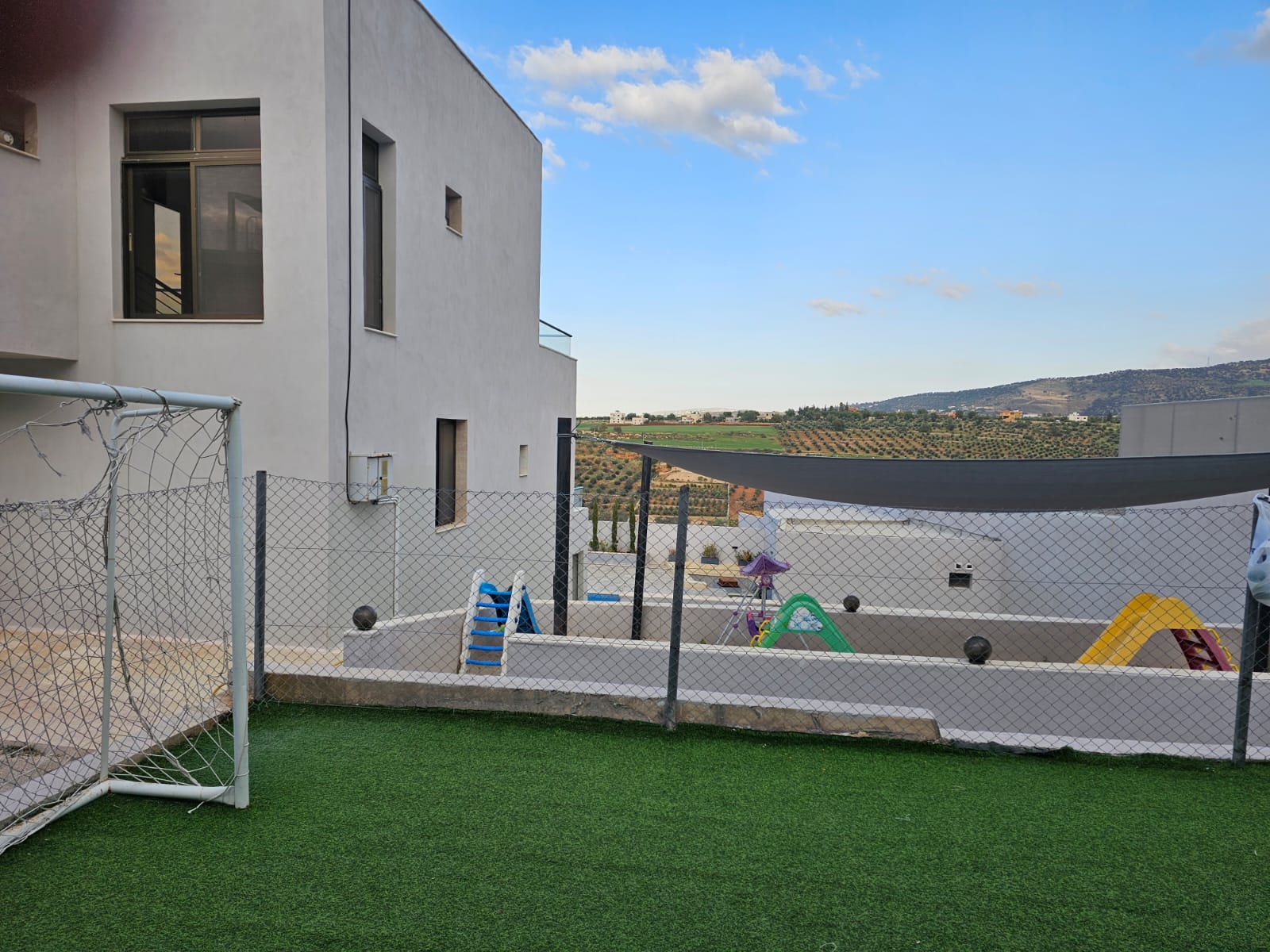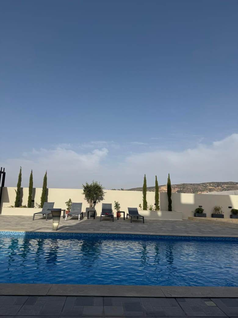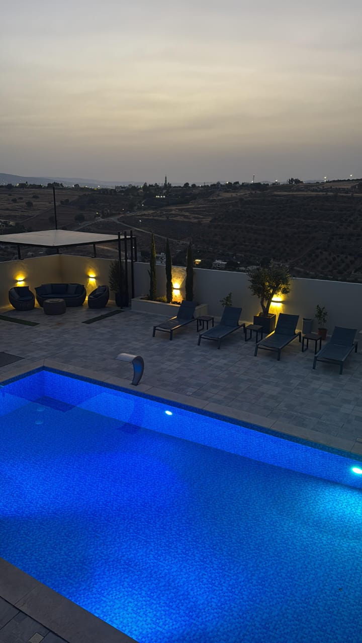تشطيبات فاخرة - المنزل مؤثث بالكامل - ديكورات خارجية - بركة سباحة جميلة جدا - قعدات خارجية مميزة - ترسات خارجية - منطقة العاب وملعب كرة قدم - بئر ماء- غرفة حارس واصل جميع الخدمات - مشجرة بالزيتون واشجار زينة