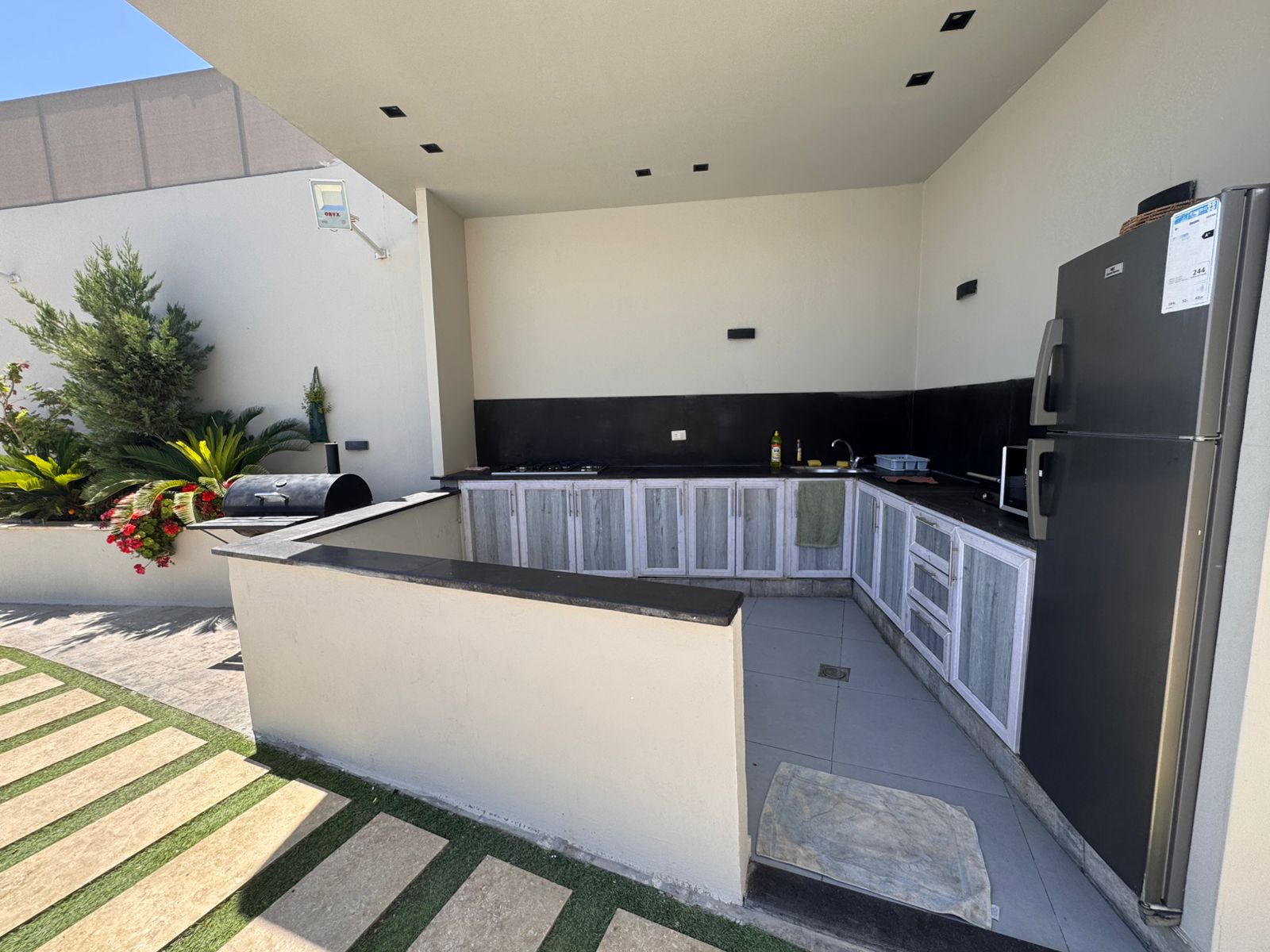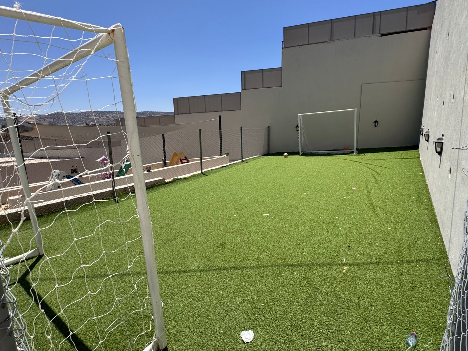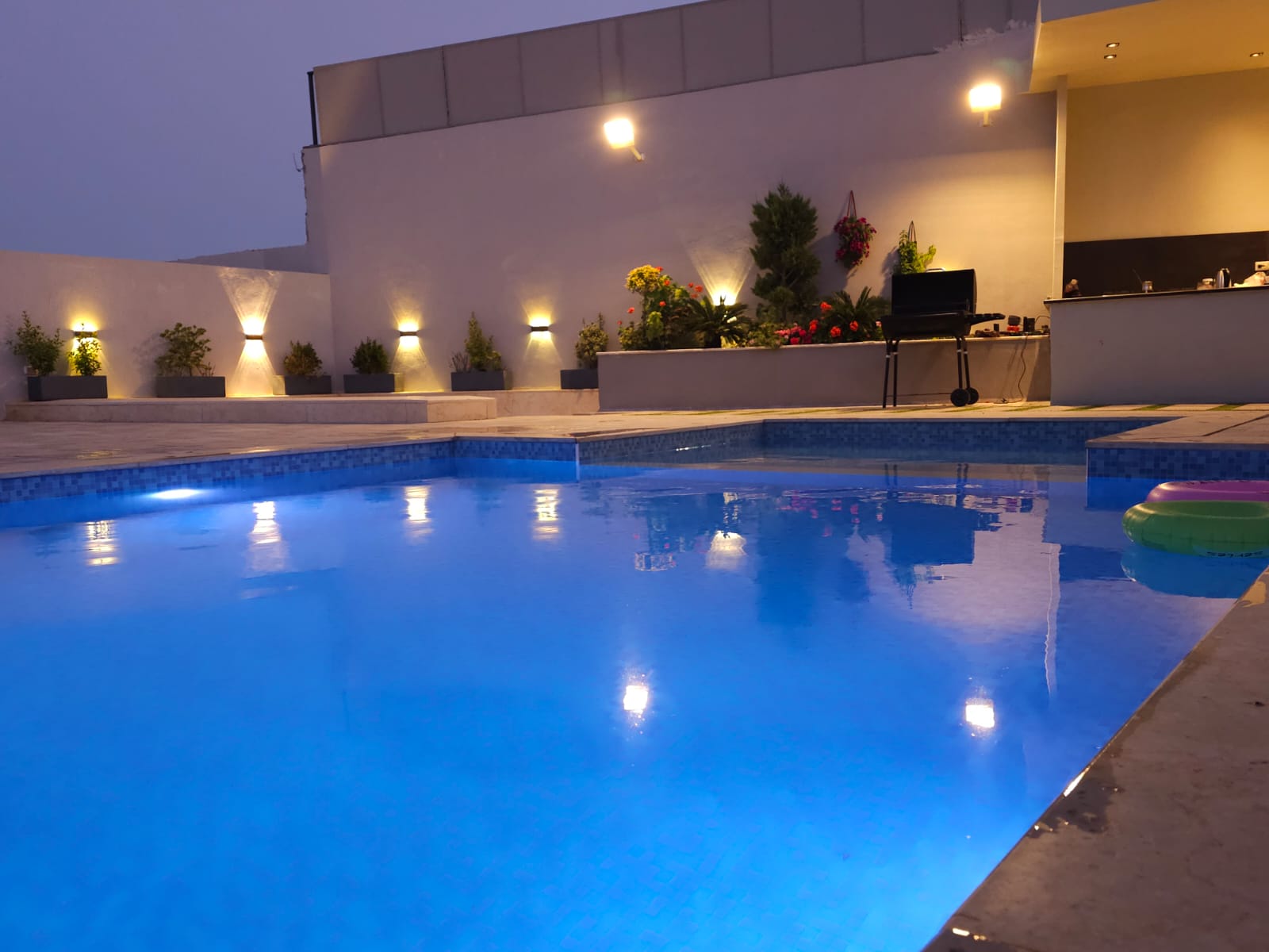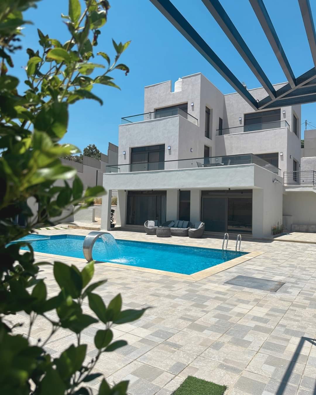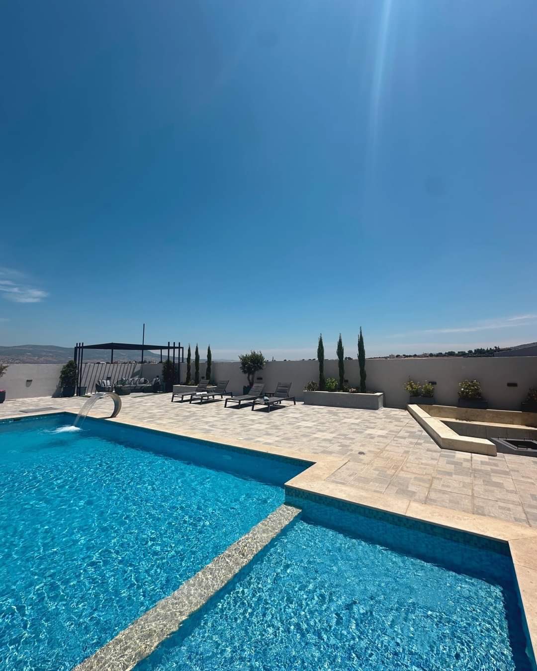 تشطيبات فاخرة - المنزل مؤثث بالكامل - ديكورات خارجية - بركة سباحة جميلة جدا - قعدات خارجية مميزة - ترسات خارجية - منطقة العاب وملعب كرة قدم - بئر ماء- غرفة حارس واصل جميع الخدمات - مشجرة بالزيتون واشجار زينة
