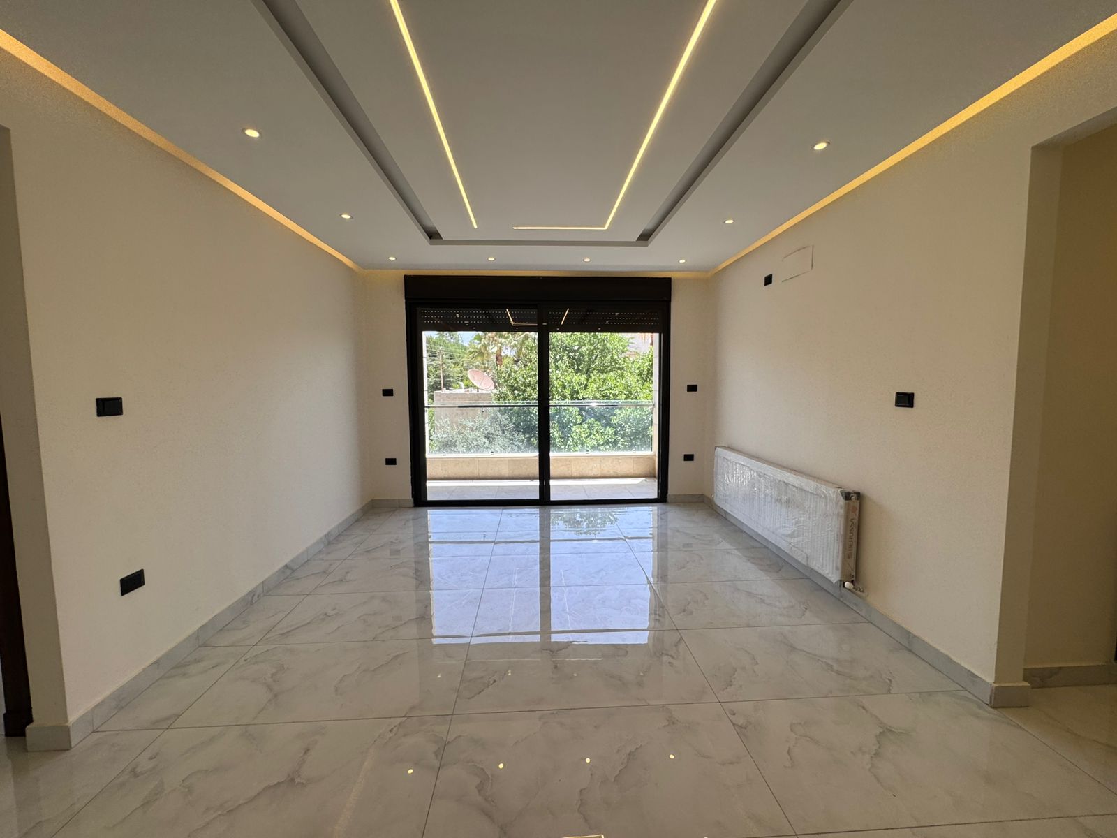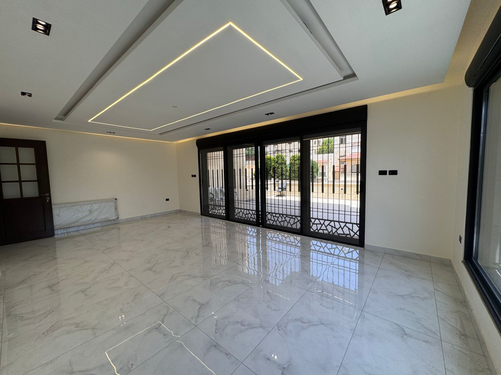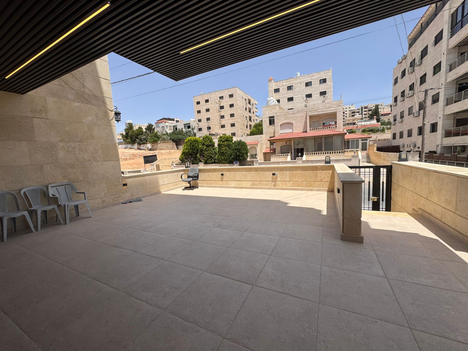 شقة للبيع في مرج الحمام / طريق المطار طابق ارضي مساحة البناء 230م ومساحة الترس 30م موقع مميز واصل جميع الخدمات