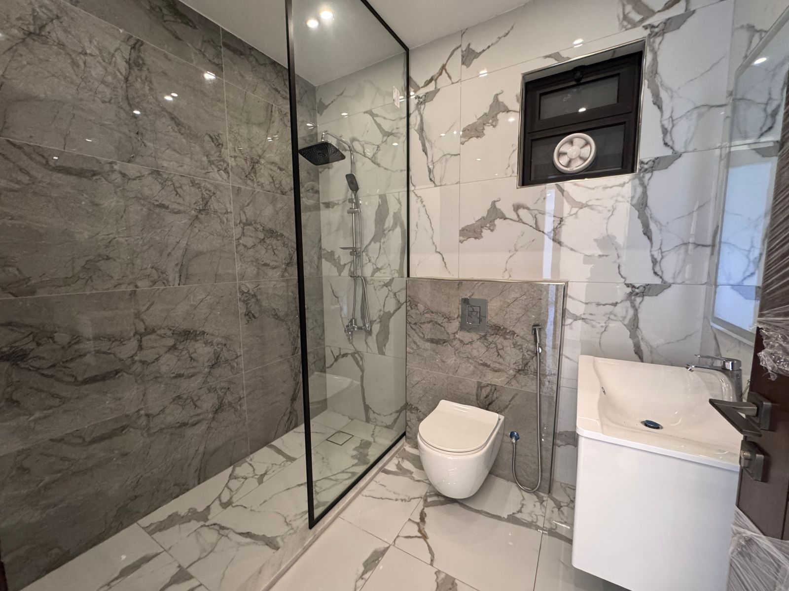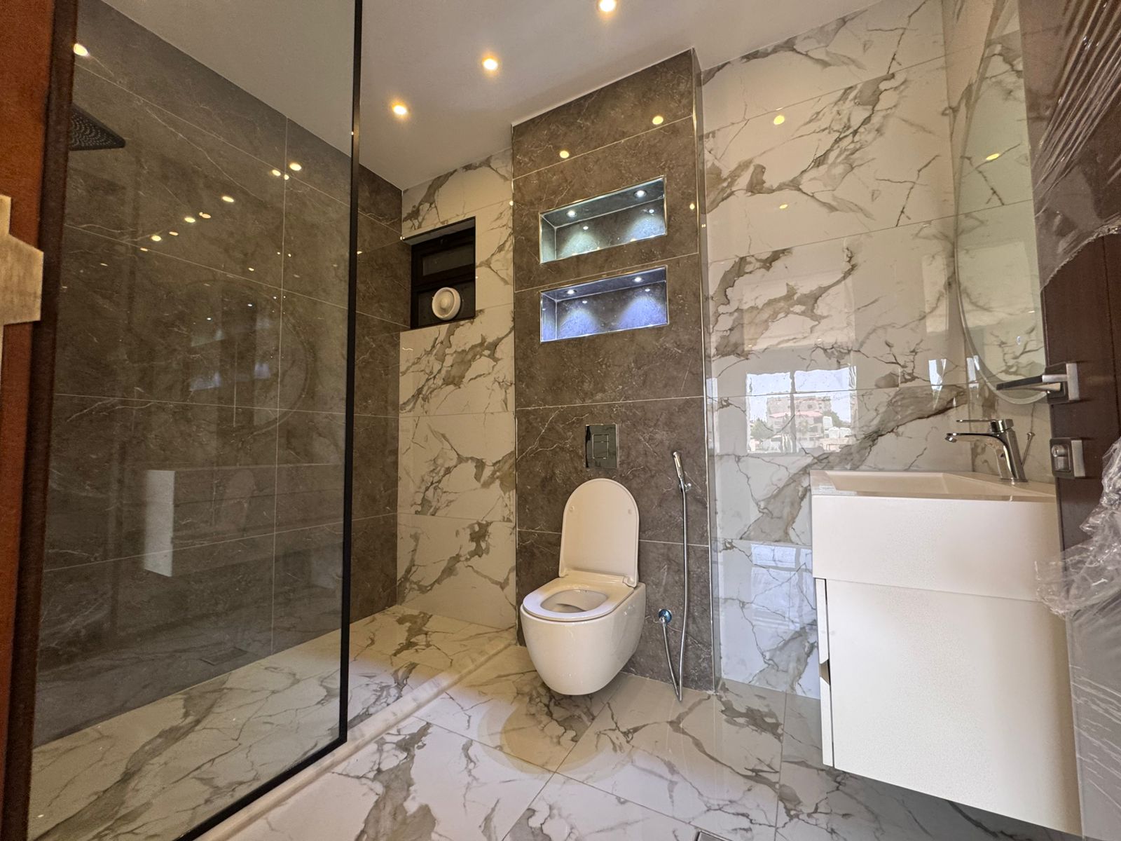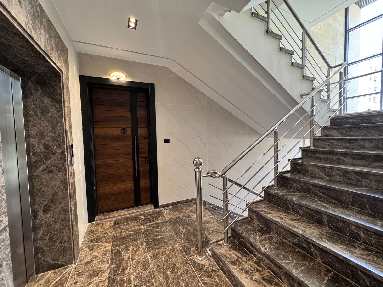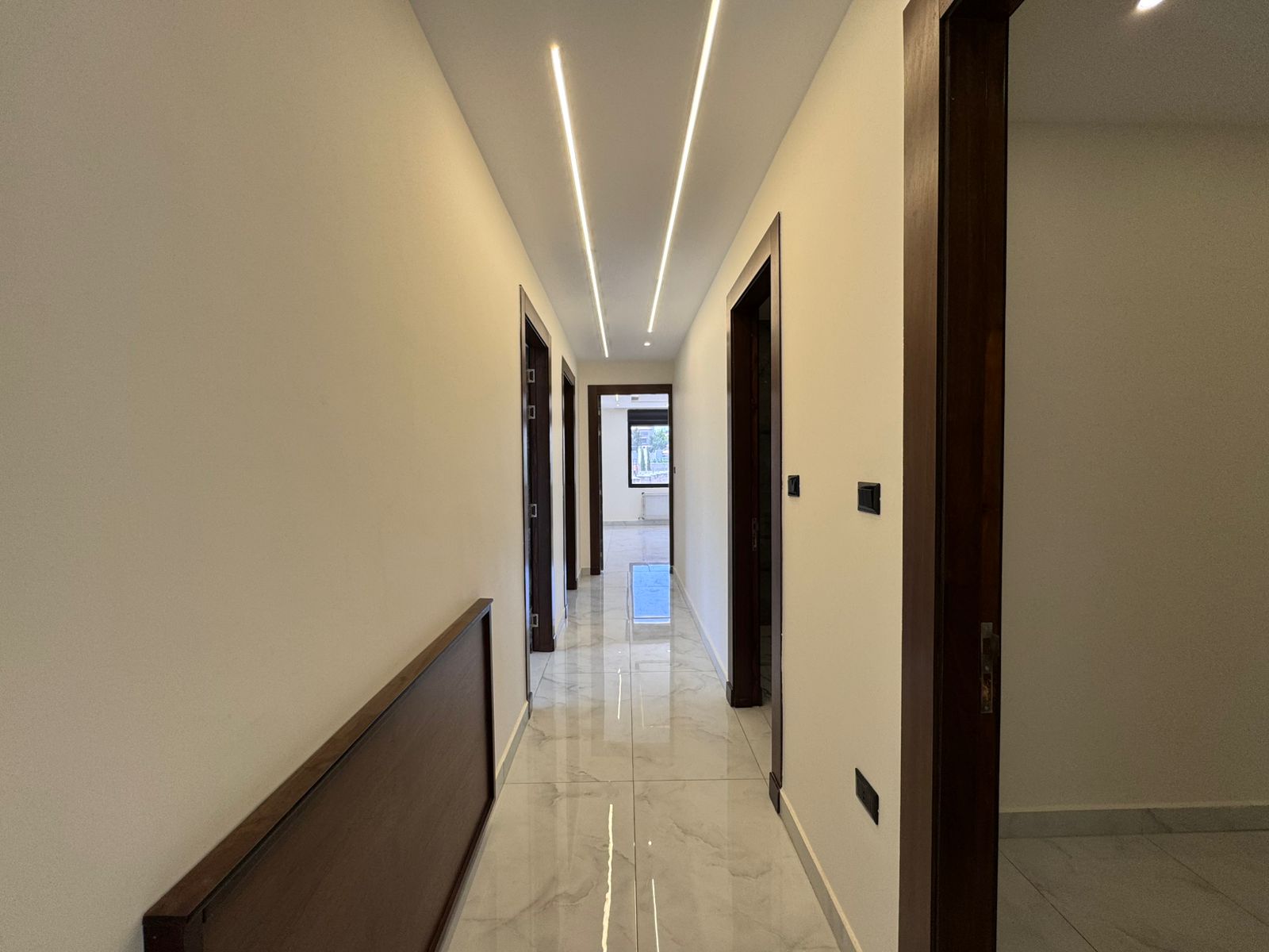 التشطيبات سوبر ديلوكس - نوع الارضيات بورسلان - تدفئة غاز - تأسيس مكيفات - غرفة خادمة - غرفة غسيل - ترس - كراج خاص - اطلالة - مصعد - عدد المداخل 2