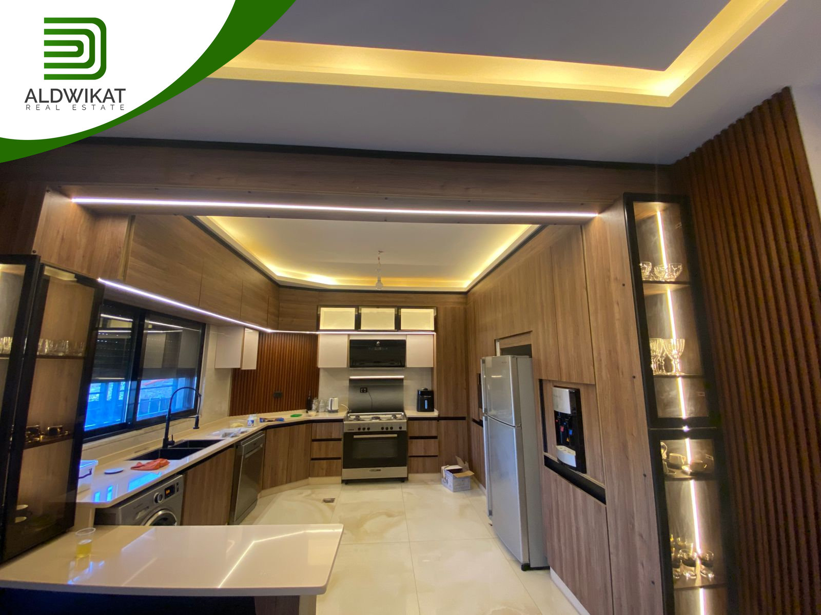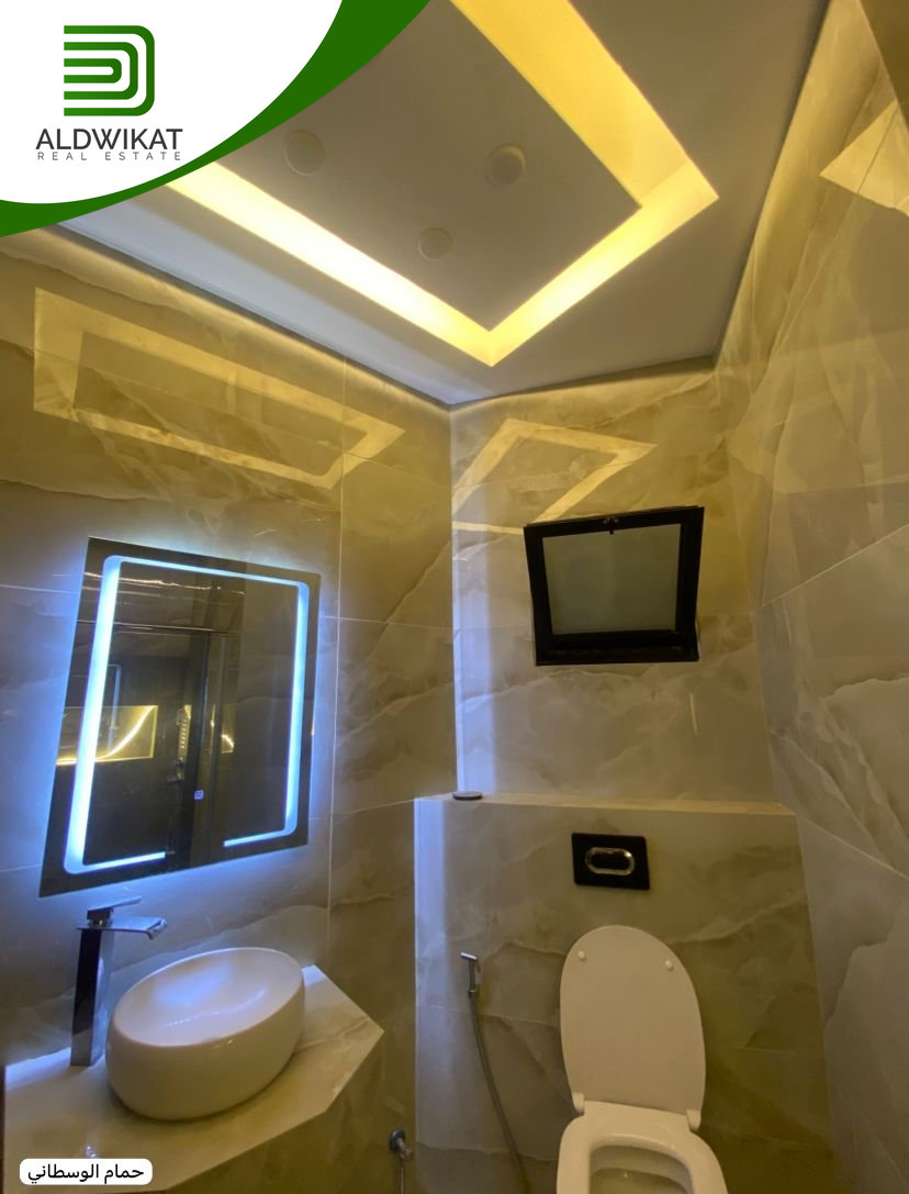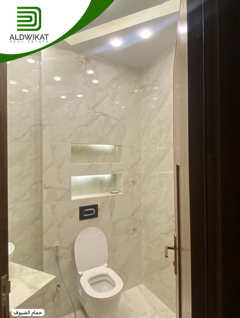 التشطيبات سوبر ديلوكس - نوع الارضيات بورسلان - التدفئة تحت البلاط - تكييف مركزي - اباجورات كهرباء - خزائن حائط - موقد