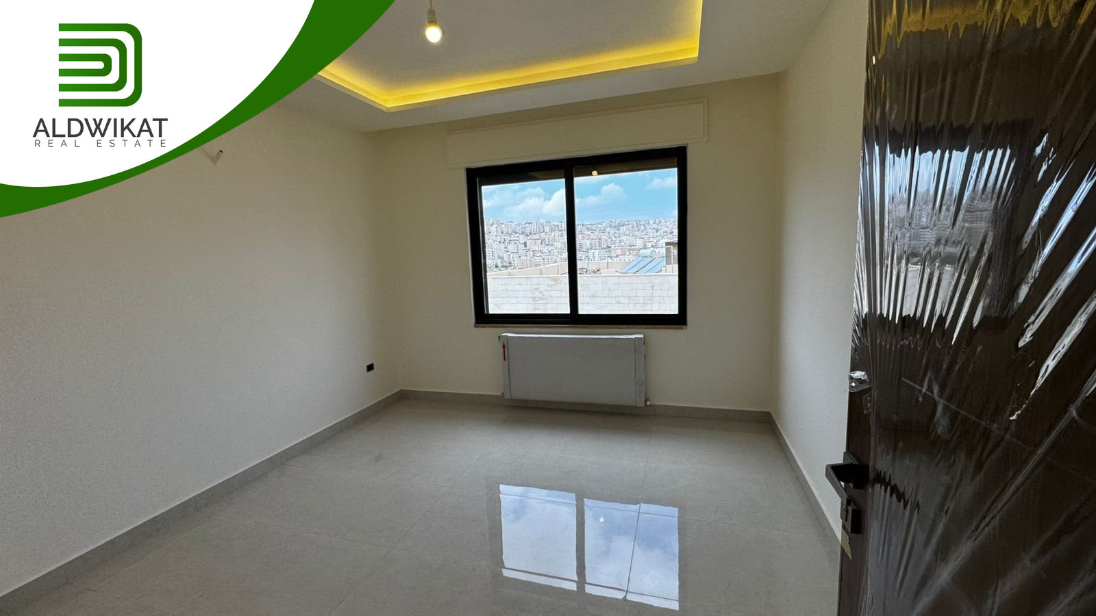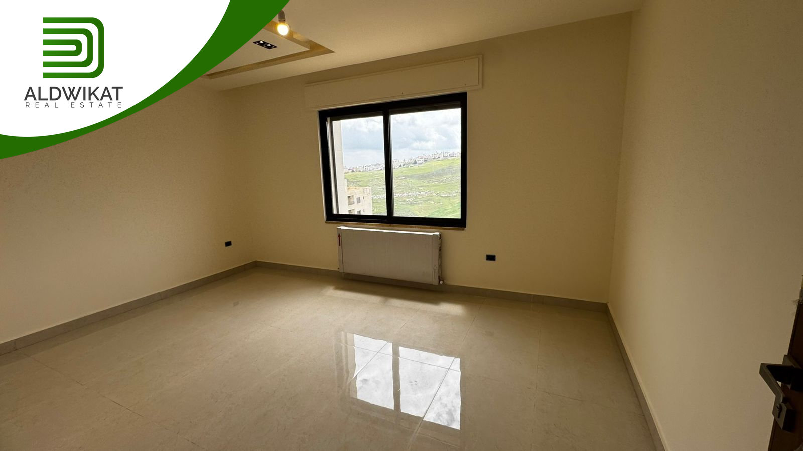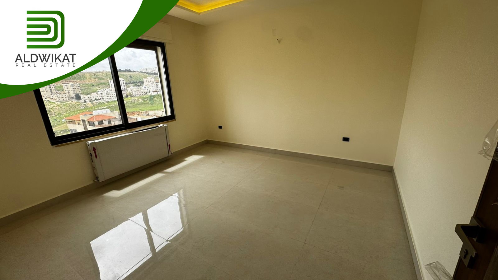 التشطيبات سوبر ديلوكس - نوع الارضيات بورسلان - التدفئة رديترات غاز - اباجورات كهرباء -