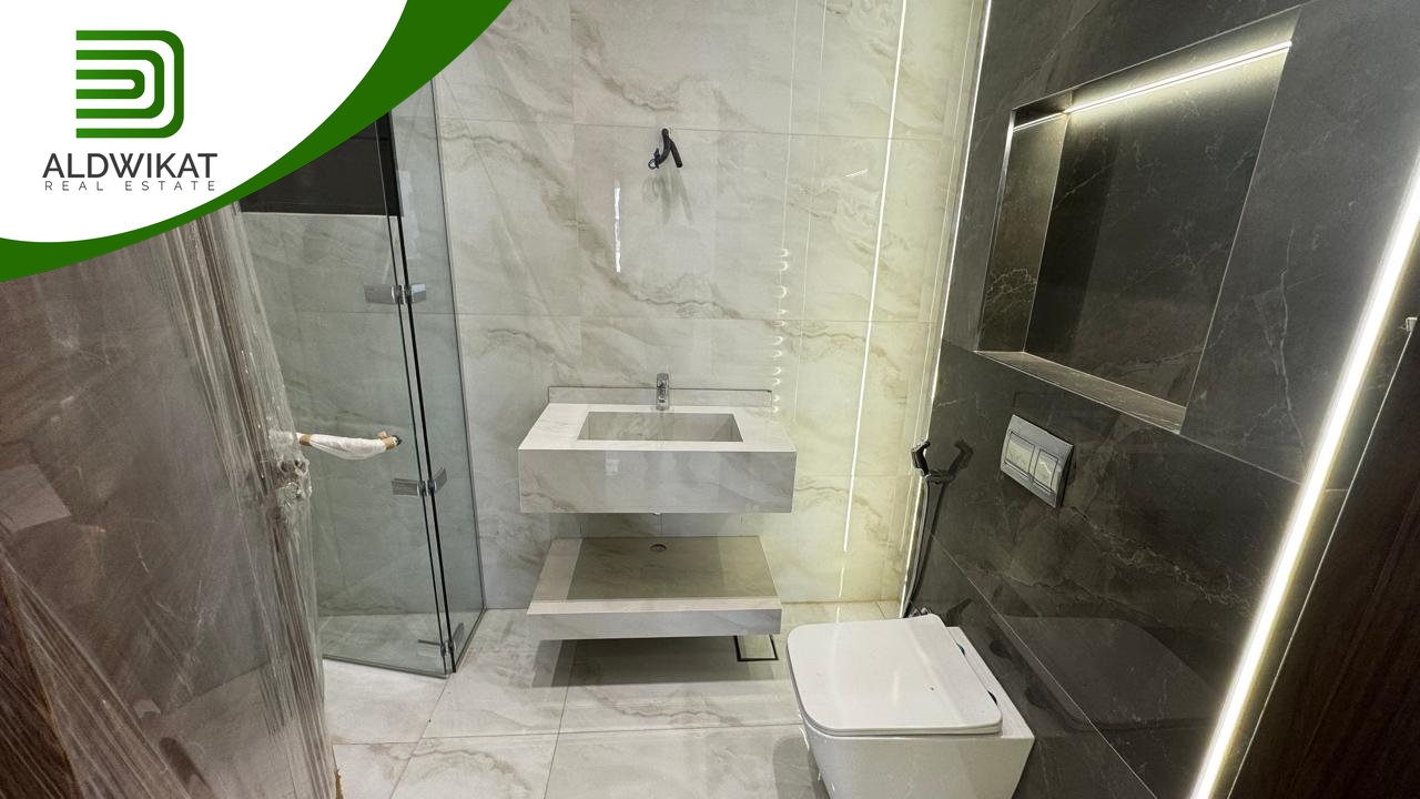التشطيبات سوبر ديلوكس - نوع الارضيات بورسلان - التدفئة رديترات غاز - اباجورات كهرباء -