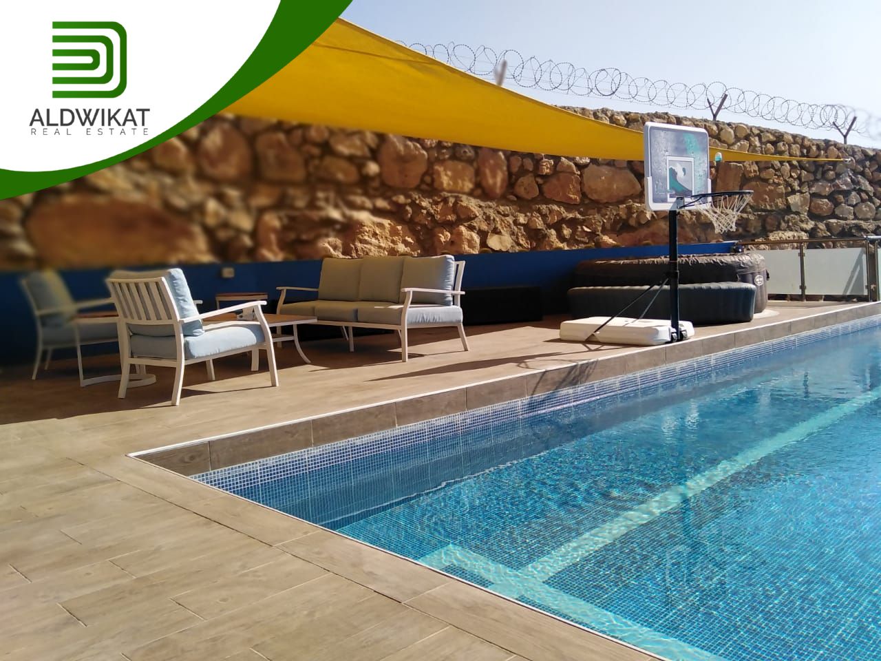 <p>First floor: salon - living room - 3 bedrooms 1 master - large kitchen - small kitchen - 3 bathrooms - gardens - outdoor seating - large Terrace with view - swimming pool 5m * 15m - jacuzzi - 2 water well - garages electric gates - Tennis court - basketball court.</p>