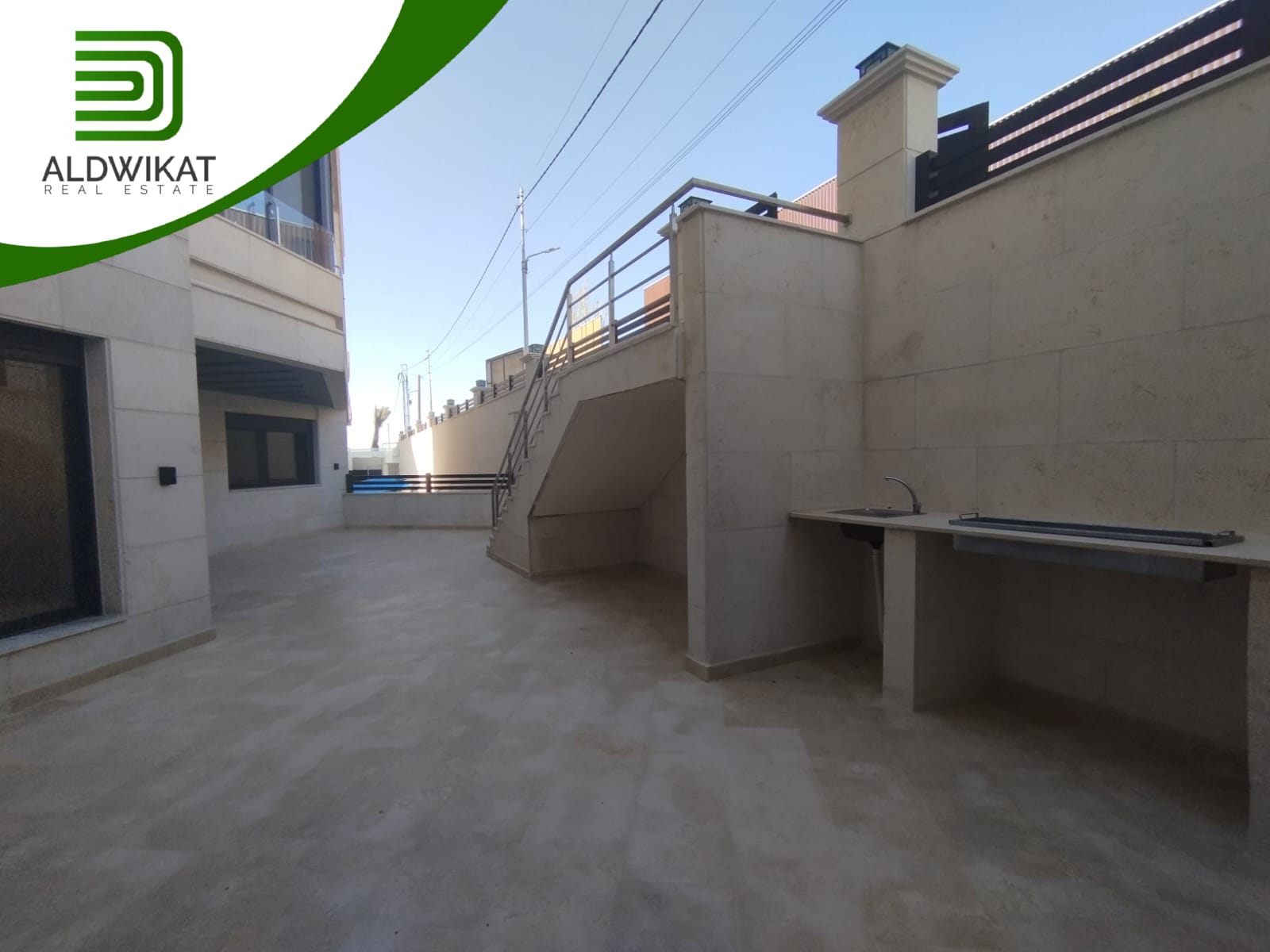 شقة للبيع في رجم عميش/قصر الصنوبر طابق تسوية مساحة البناء 280م ومساحة الترس 140م