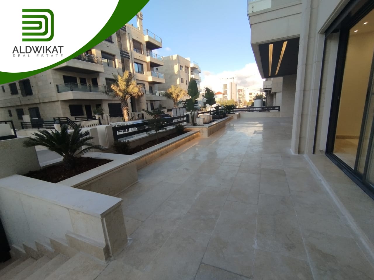 شقة ارضية للبيع في رجم عميش / طريق المطار مساحة البناء 242م ومساحة الحديقة والترس 220م