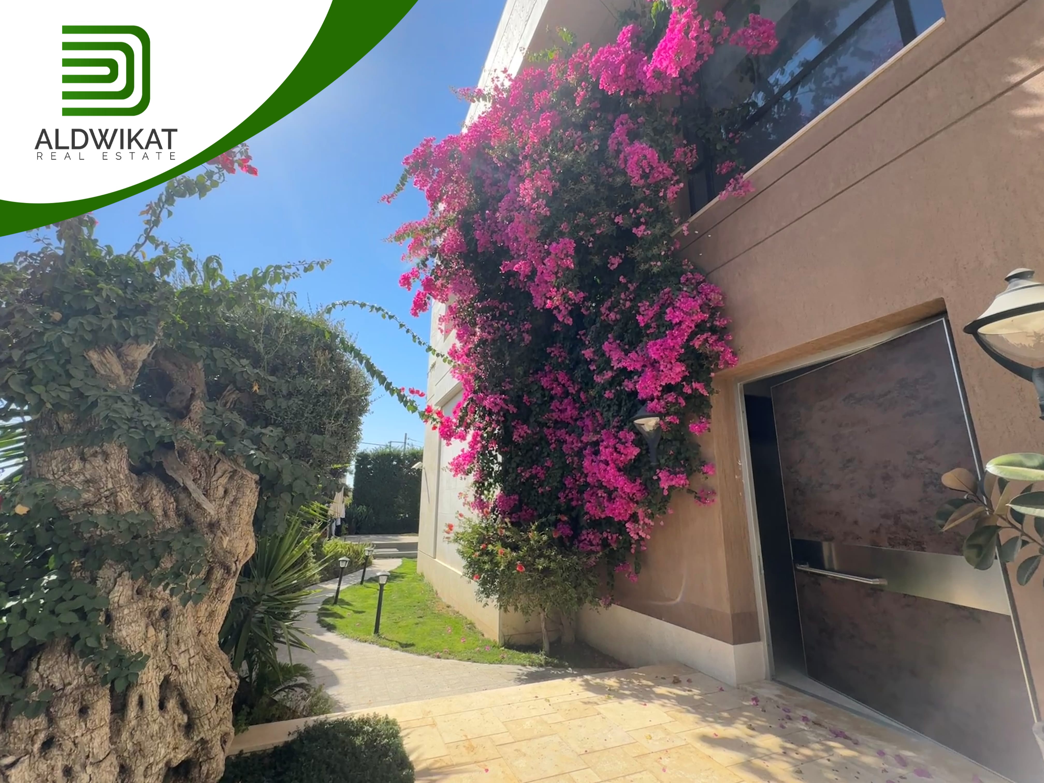 التشطيبات سوبر ديلوكس - نوع الارضيات بورسلان + ارخام - التدفئة غاز - تكييف مركزي + مكيفات - حديقة - كراج خاص - مصعد - موقد - اطلالة - طاقة شمسية - بئر ماء