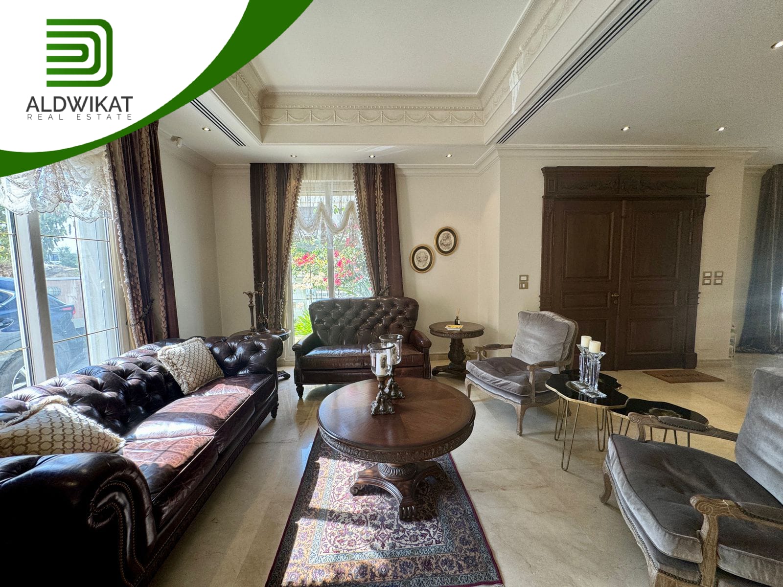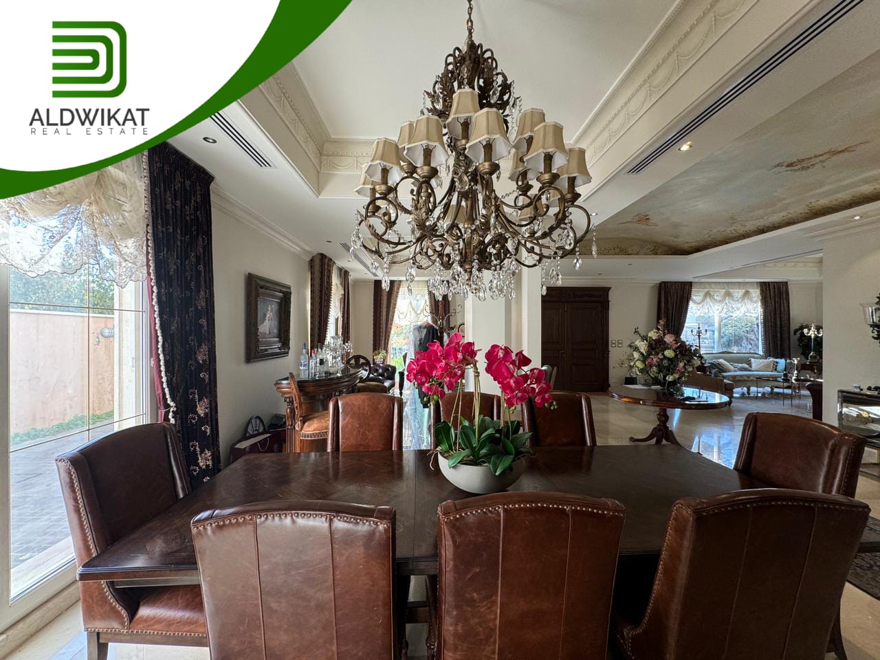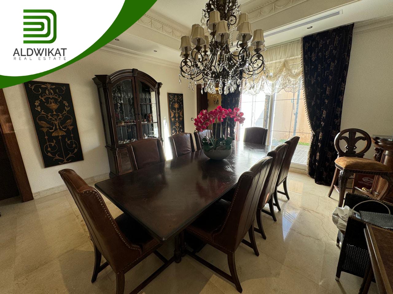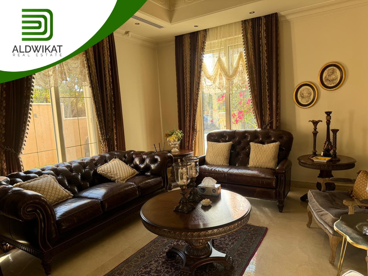 التشطيبات سوبر ديلوكس - نوع الارضيات ارخام + بورسلان - تدفئة تحت البلاط - تكييف مركزي + مكيفات - حديقة - تدفئة مركزية - كراج خاص - اطلالة - بئر ماء - موقد - مفروش - ديكورات - مطبخ راكب