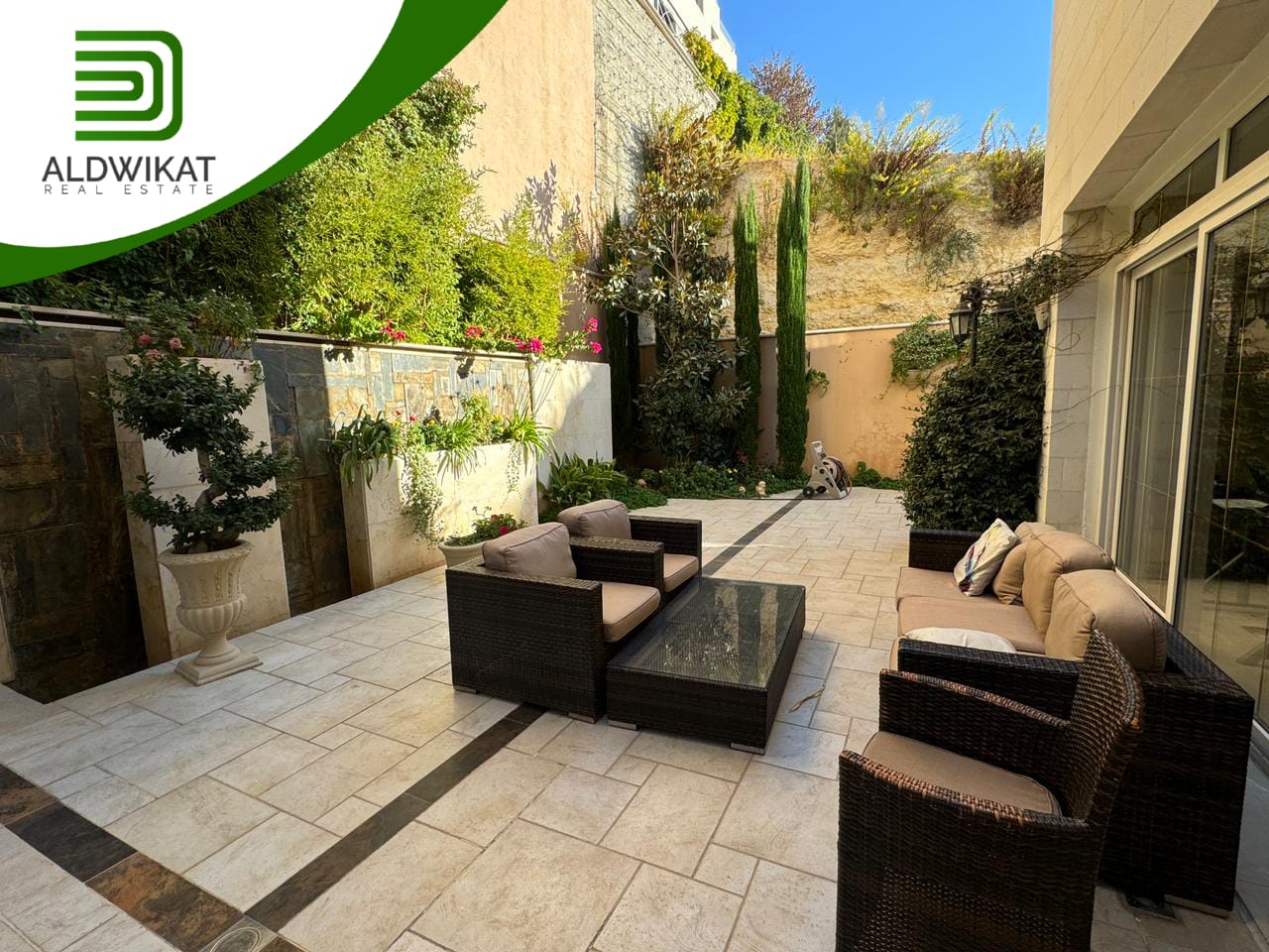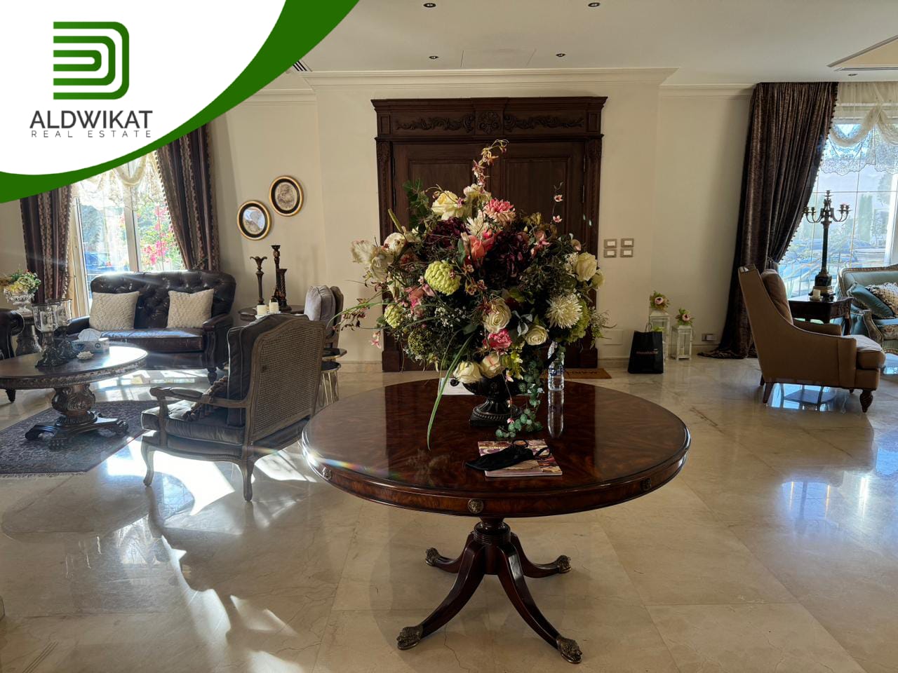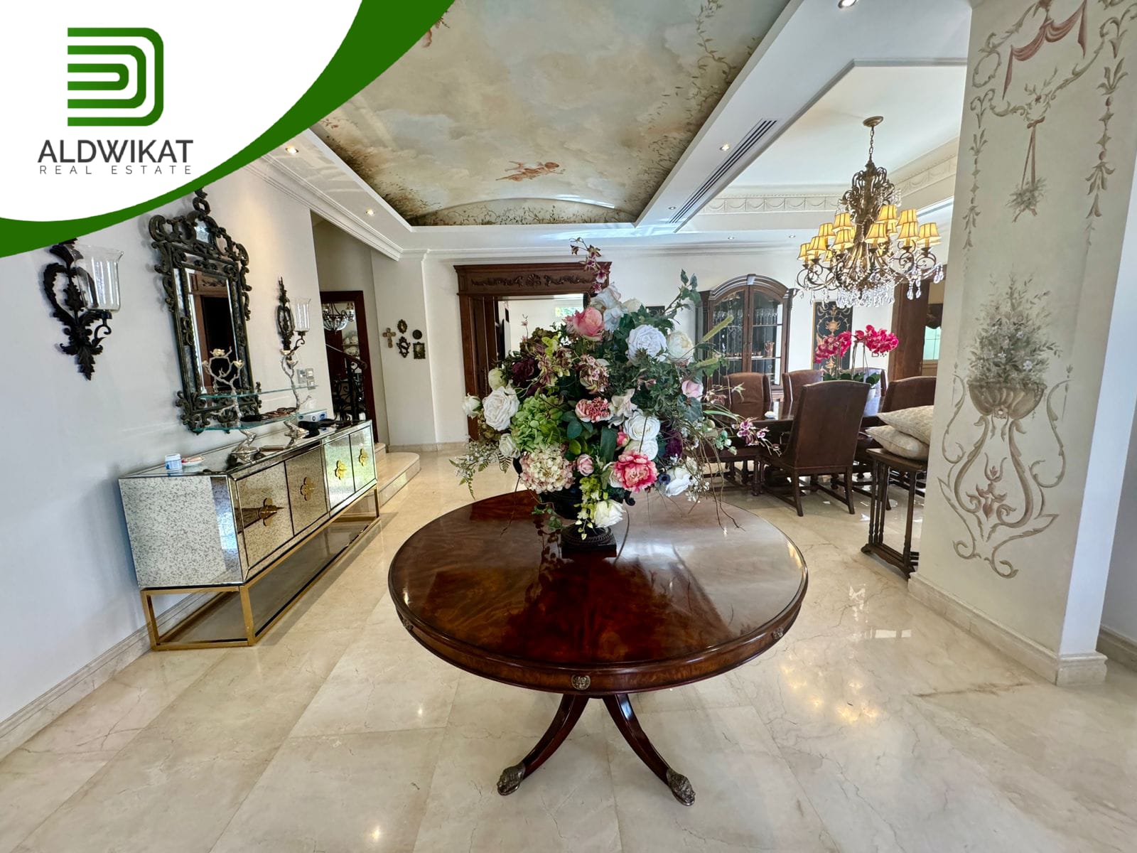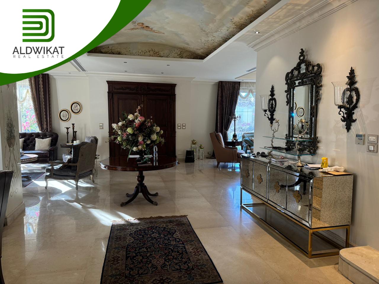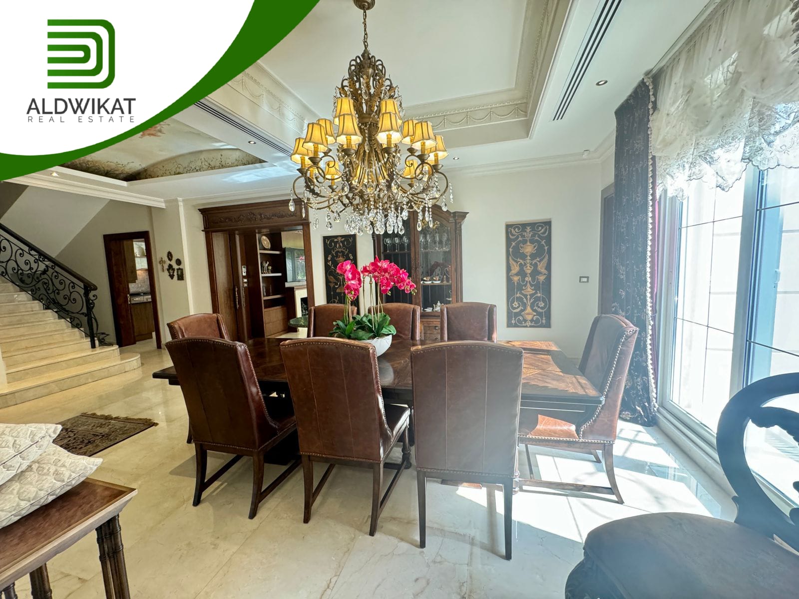 التشطيبات سوبر ديلوكس - نوع الارضيات ارخام + بورسلان - تدفئة تحت البلاط - تكييف مركزي + مكيفات - حديقة - تدفئة مركزية - كراج خاص - اطلالة - بئر ماء - موقد - مفروش - ديكورات - مطبخ راكب