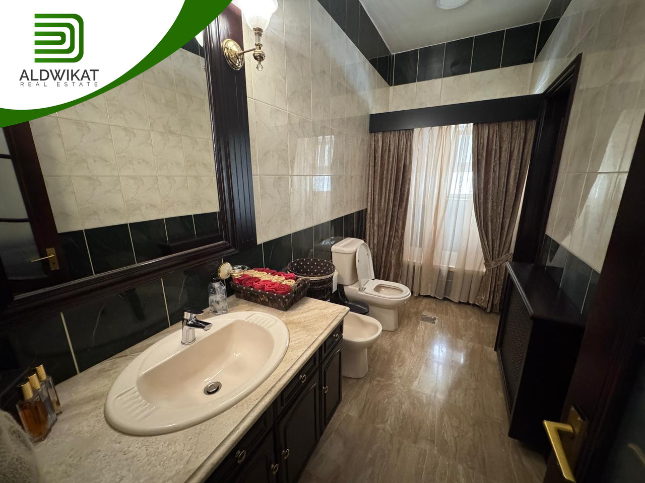 التشطيبات سوبر ديلوكس - نوع الارضيات بورسلان + ارخام - تدفئة مركزية - تكيف - كراج خاص - اطلالة - مدخل مستقل - ديكورات - خزائن حائط