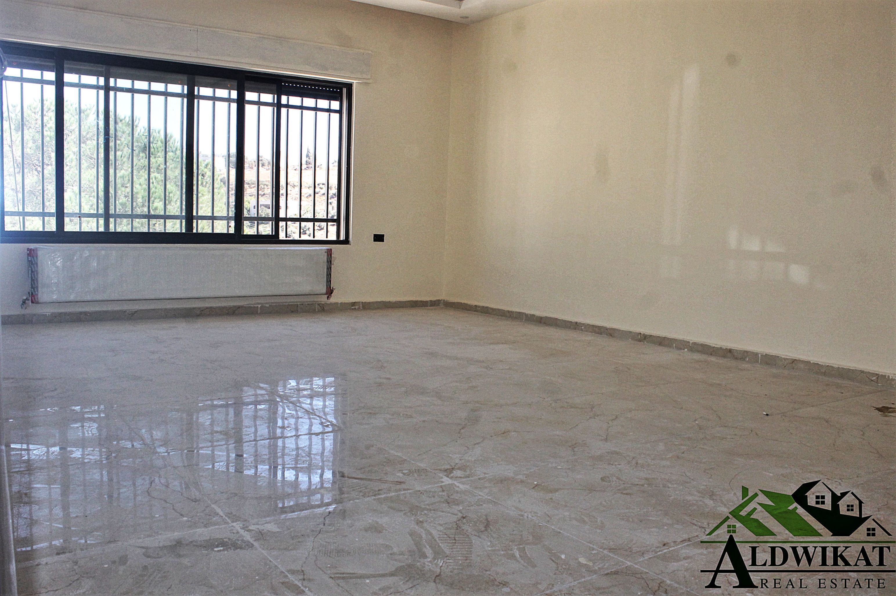 شقة ارضية للبيع في منطقة مرتفعة ومطلة في رجم عميش بمساحة 215م مع ترسات وكراج خاص 100م التفاصيل : 3 نوم 1 ماستر صالة وصالون معيشة مع المطبخ , غرفة خادمة مع حمامها , بلكونة خلفية , ترس امامي و كراج خاص يتسع لسيارتين المواصفات : تدفئة مركزية على الغاز اطلالة جميلة حدائق واسعة ديكورات جبصين فاخرة حمامات معلقة زجاج مقاطع خاصة ابجورات كهرباء تأسيس تكييف انارة مخفية ارضيات سيراميك اسباني منطقة سكن خاص ( محاطة بالفلل و القصور ) جديدة لم تسكن بسعر مغري 205 الف للجادين
