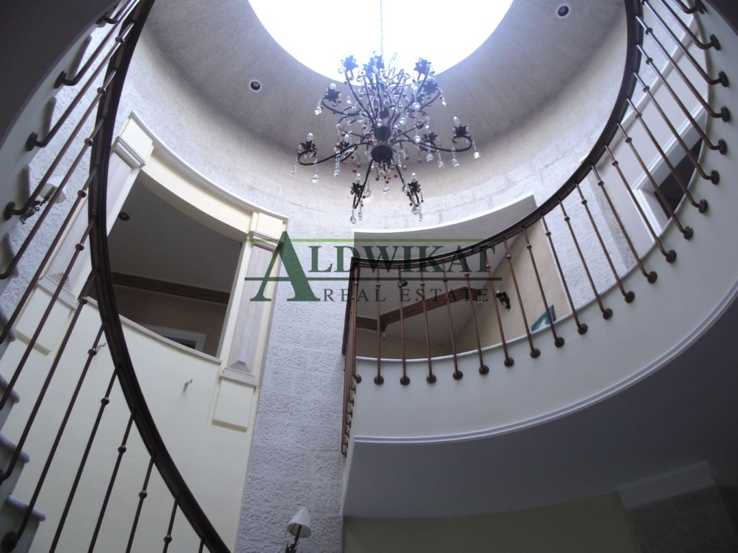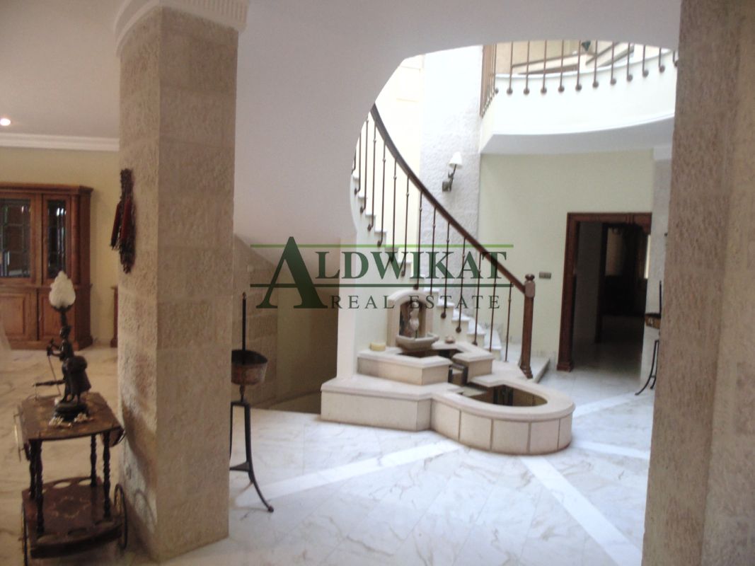 فيلا للبيع في اجمل مناطق الجبيهة ذات اطلالة خلابة مساحة البناء 1100 متر و الارض 1000 متر معها كراج مستقل و حديقة محيطة بالفيلا , الفيلا مكونة من طابق تسوية عبارة عن سويت كامل مع مطبخ وغرفة نوم ماستر و معيشة وخزائن وديكورات خشبية , الطابق الارضي مكون من صالونات و مطبخ رئيسي و غرفة مكتب و غرفة نوم ماستر , الطابق الاول مكون من غرف النوم الماستر و مغيشة بالاضافة الى ترس مميز باطلالته, الروف عبارة عن جزء خاص للخدم مع حمام مع غرفة غسيل .