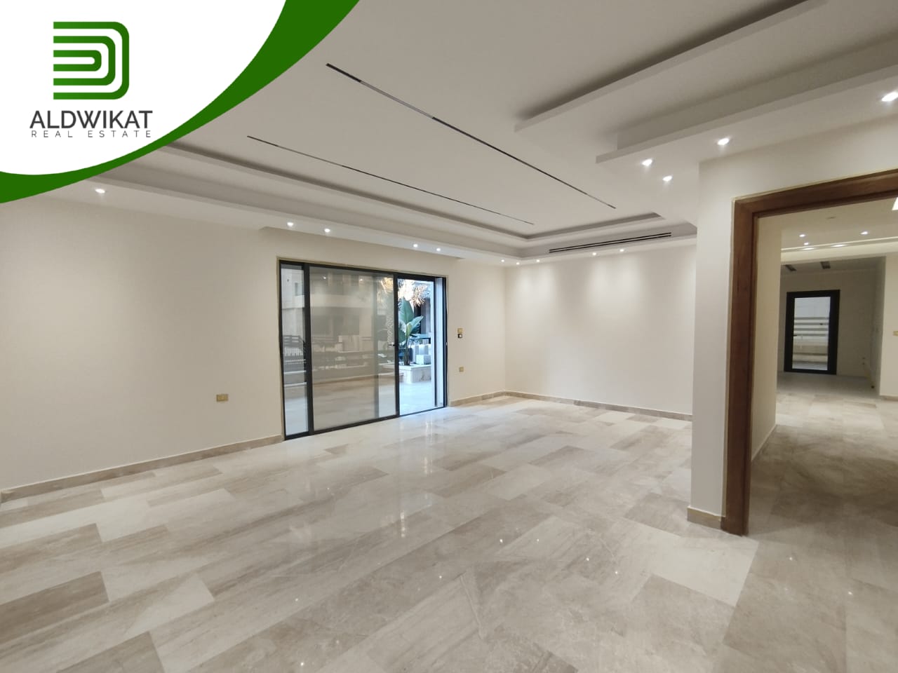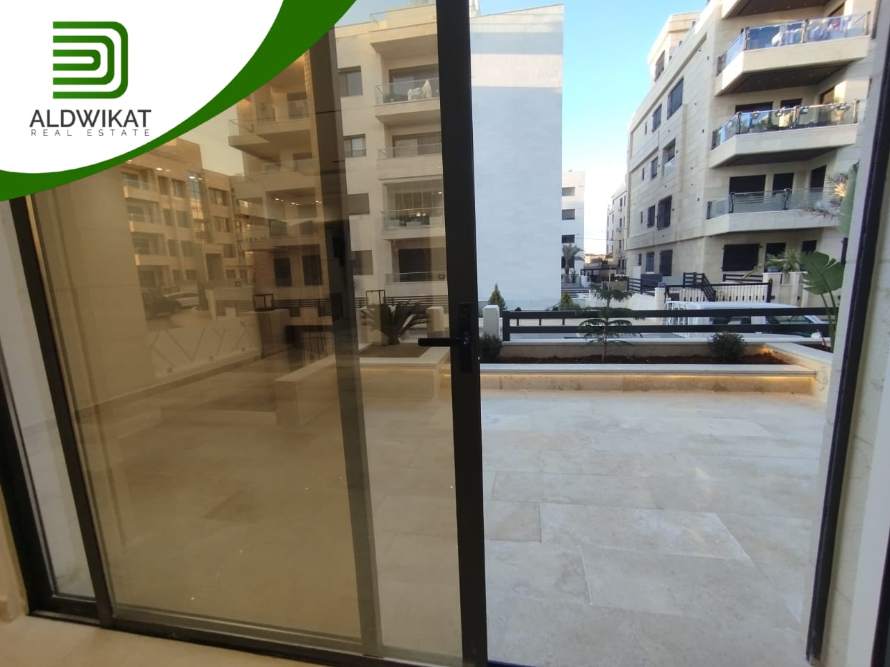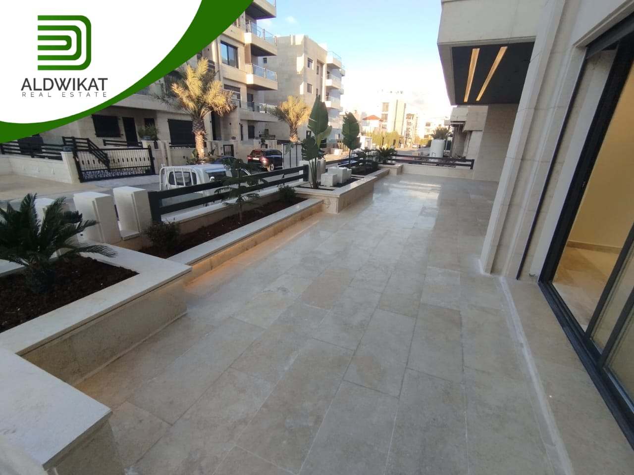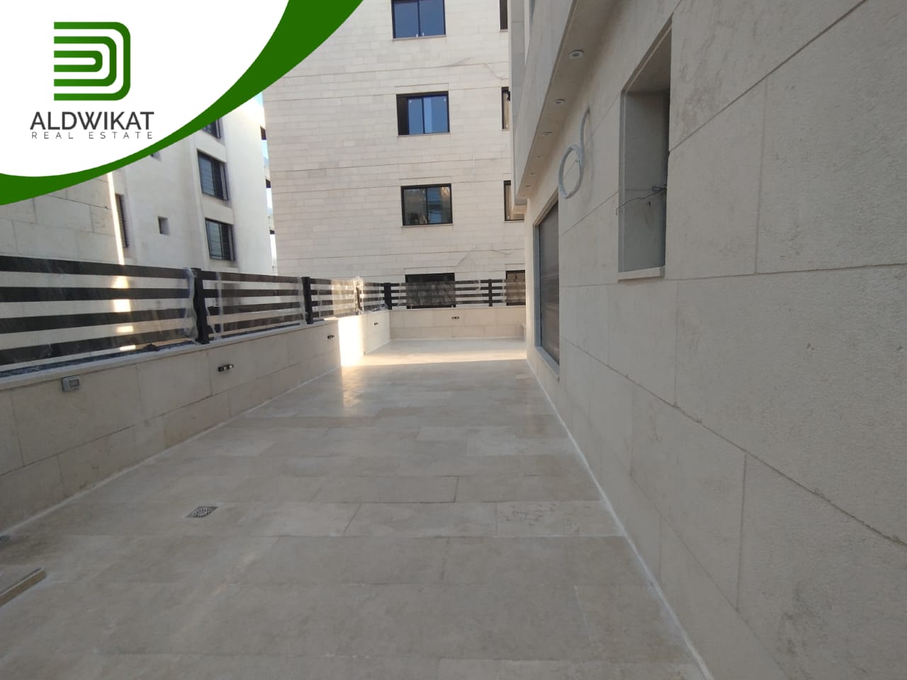 شقة ارضية للبيع في رجم عميش / طريق المطار مساحة البناء 242م ومساحة الحديقة والترس 220م
