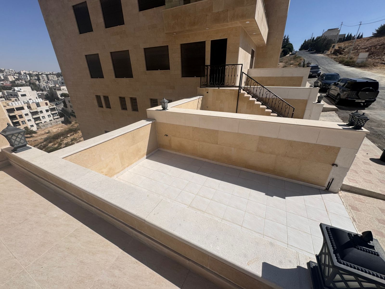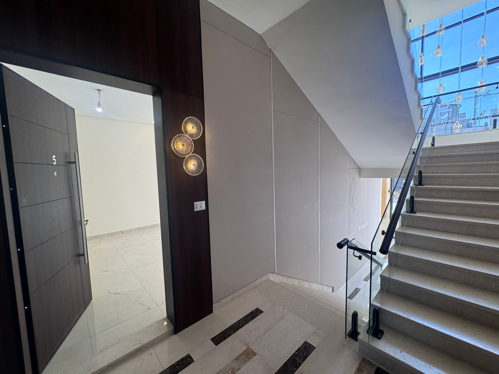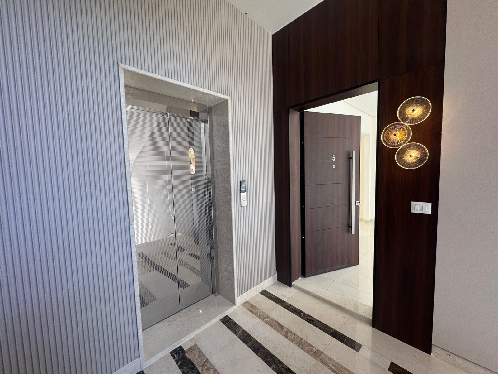 التشطيبات سوبر ديلوكس - نوع الارضيات باركيه + بورسلان - تدفئة غاز تحت البلاط - مكيفات - كراج خاص - مصعد - مدخل مستقل - ديكورات