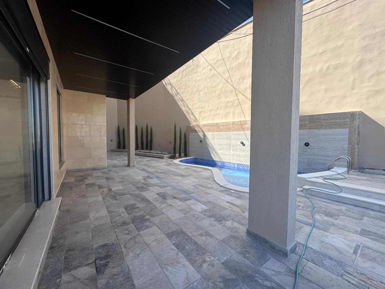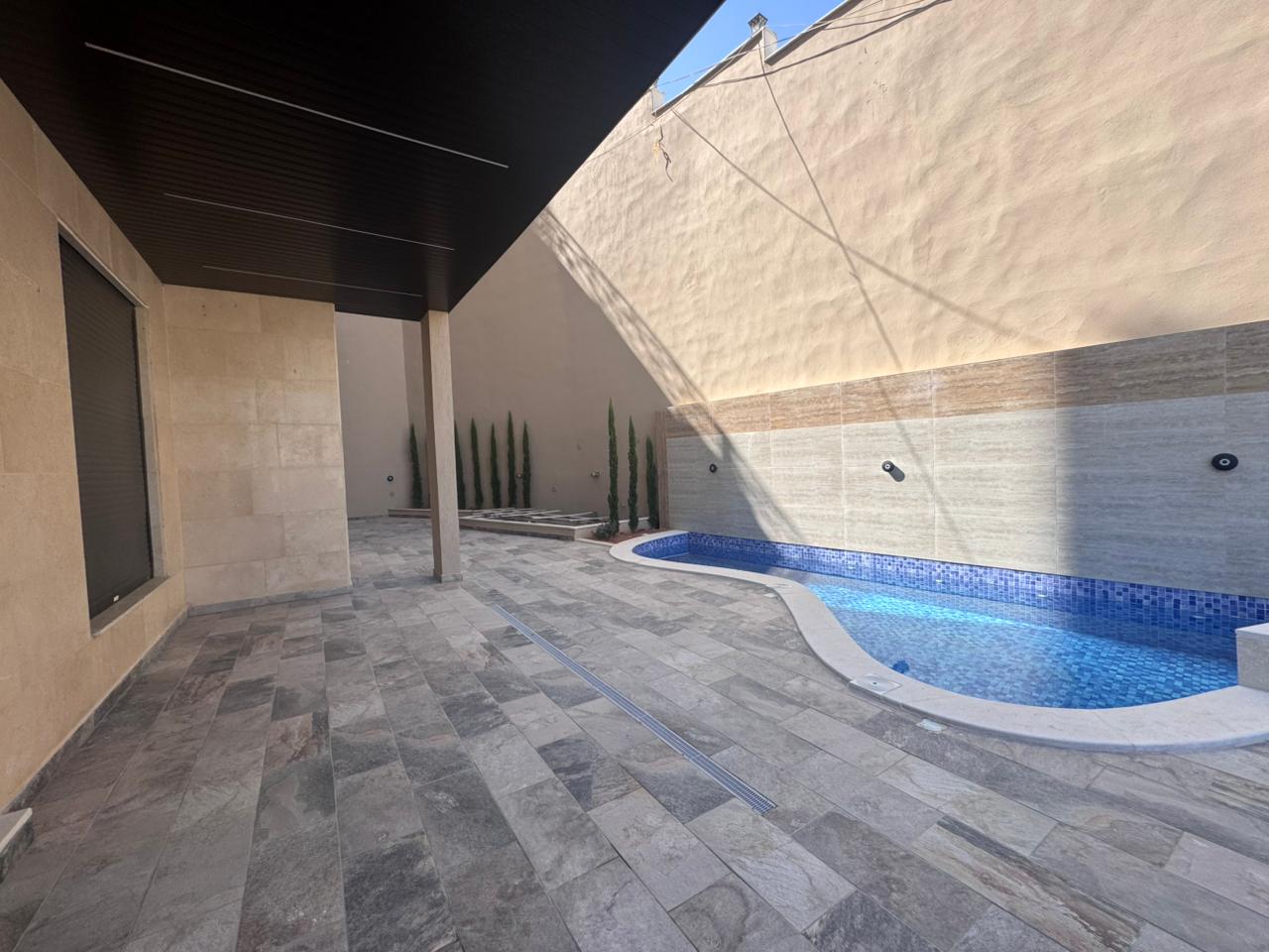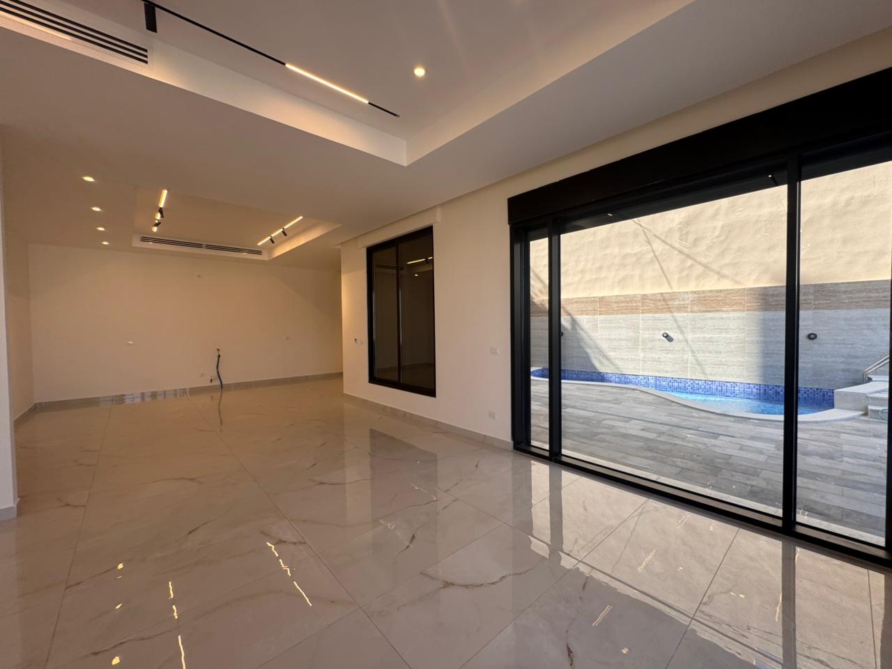 4 غرف نوم 4 ماستر - الحمامات 7 - صالون - غرفة معيشة 2 - مطبخ عدد 2 - غرفة خادمة - مستودع - غرفة غسيل - ترس - كراج خاص - مسبح.