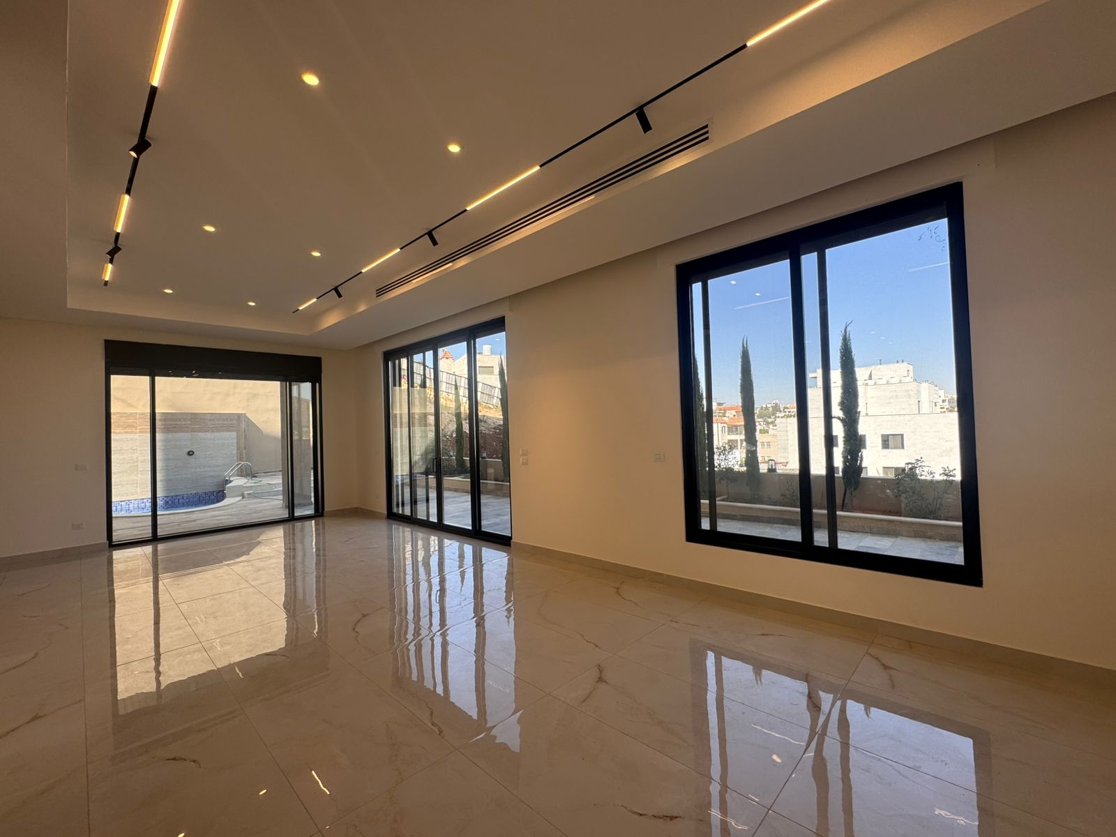 تشطيبات سوبر ديلوكس -رخام + باركيه - تدفئة تحت البلاط - تكييف مركزي - انارة سبوت لايت - اباجورات كهربائية - ديكورات جبصين - شور بوكس - حمامات معلقة - زجاج دبل - مصعد - جديدة لم تسكن - اطلالة جميلة .