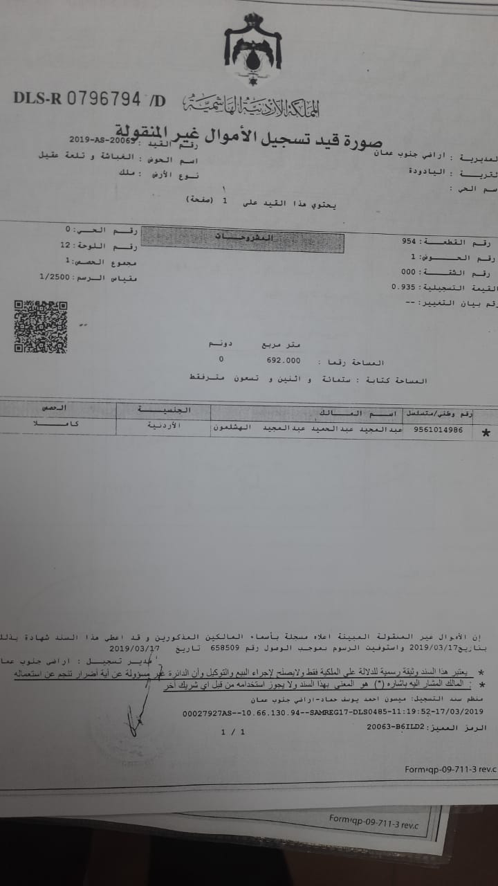 السعر : 900 الف دينار اردني قابل للتفاوض