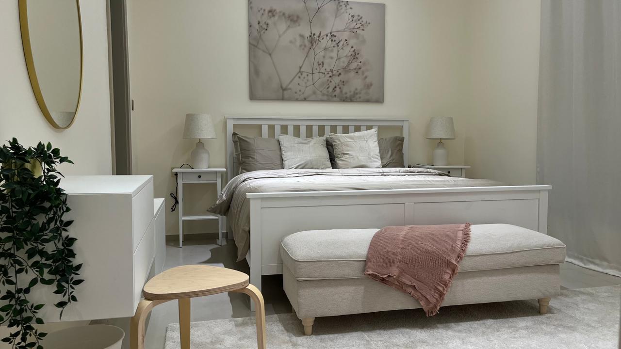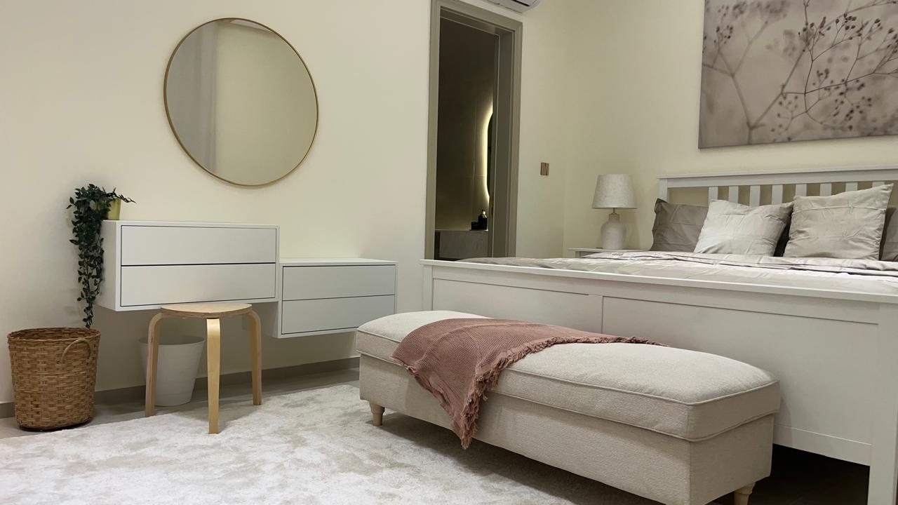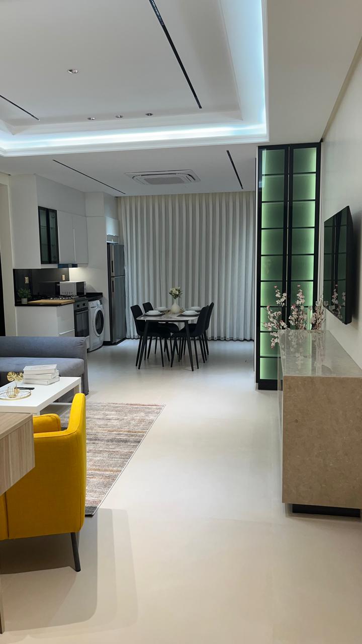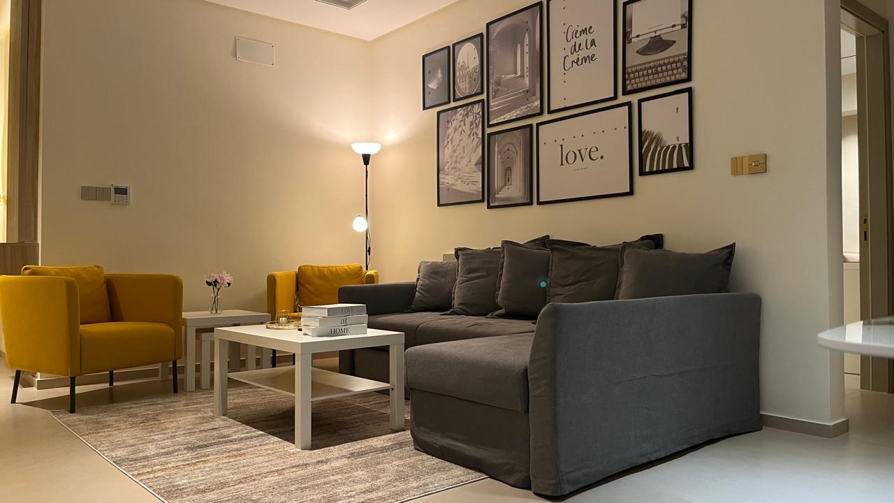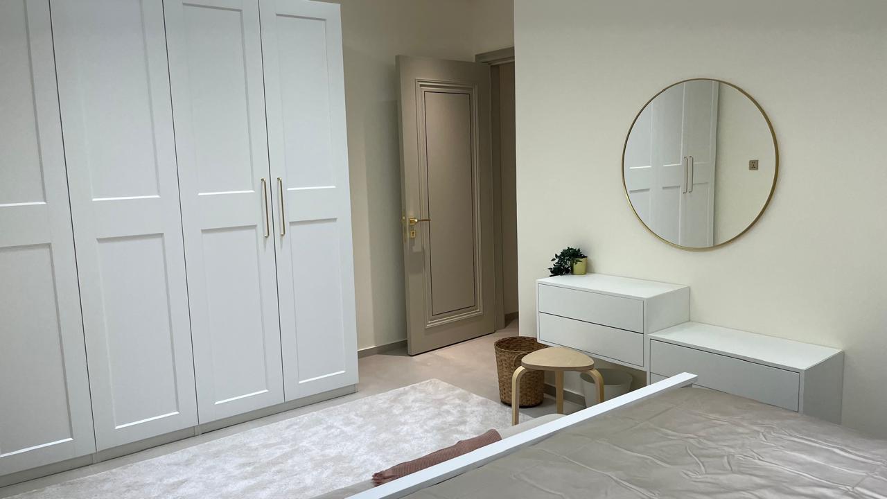 التشطيب سوبر ديلوكس - 2 غرف نوم واحدة ماستر - صاله - صالون - مطبخ موديرن - ارضيات بورسلان - موقد - 2 حمامات ، تكييف، تدفئة - بلكونة عدد 1 - اطلالة