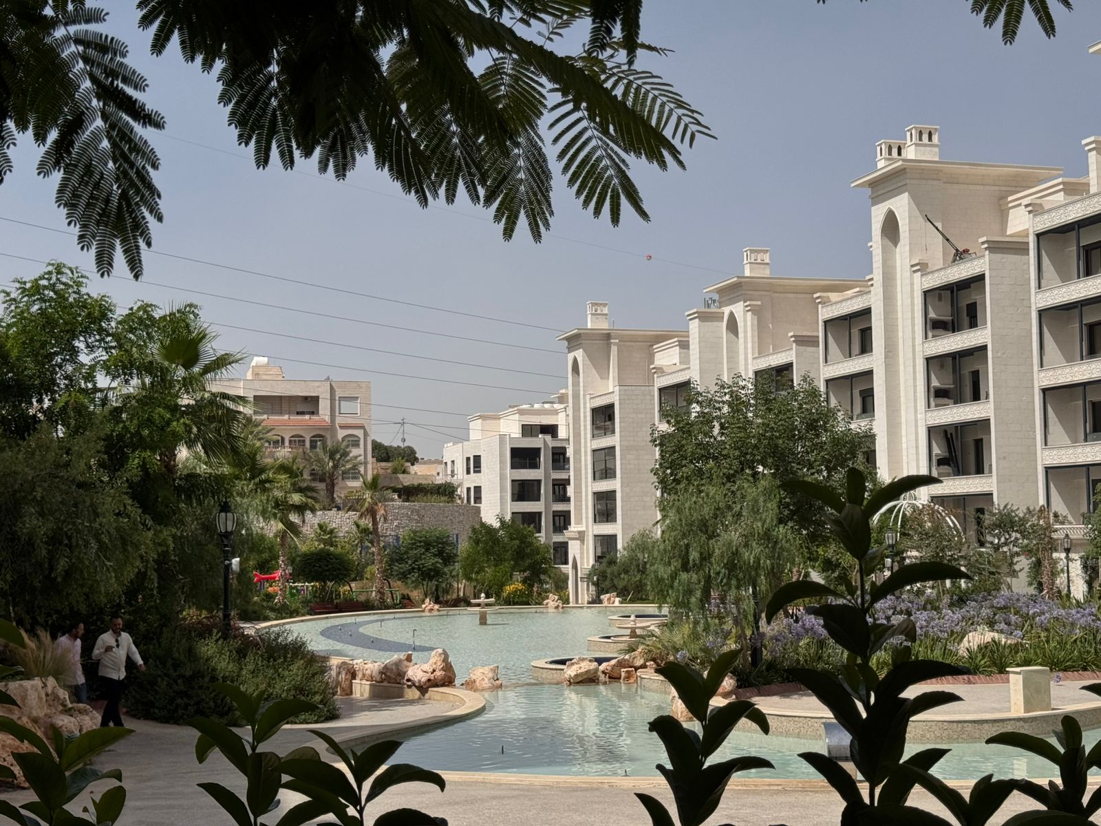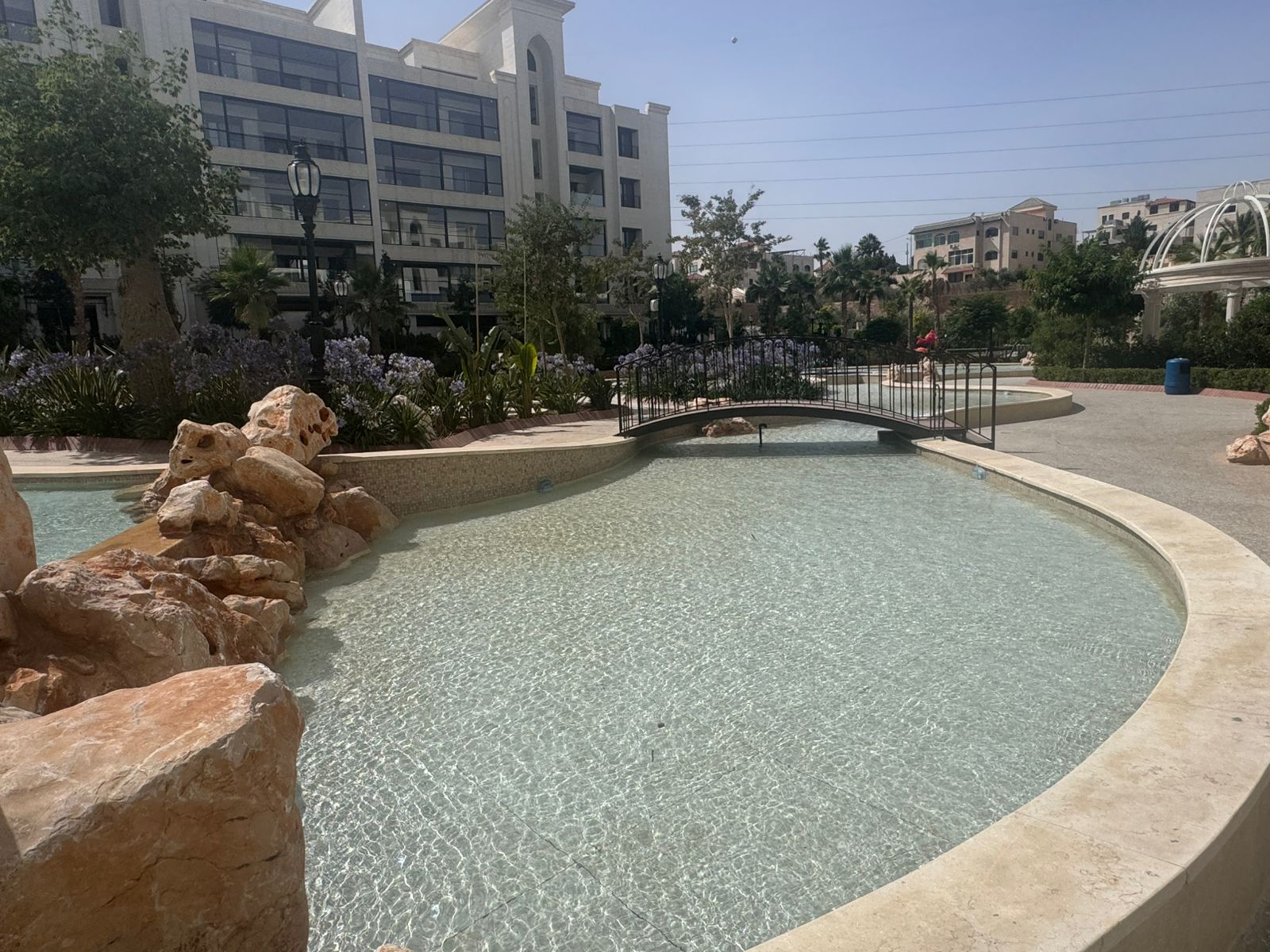 شقة طابق اول سوبر ديلوكس مفروشة للايجار ضمن كومباوند طريق المطار / قرب جامعة البترا مساحة 105م ترس 8 م يحتوي على جيم ومسبح وحدائق وكافة الخدمات