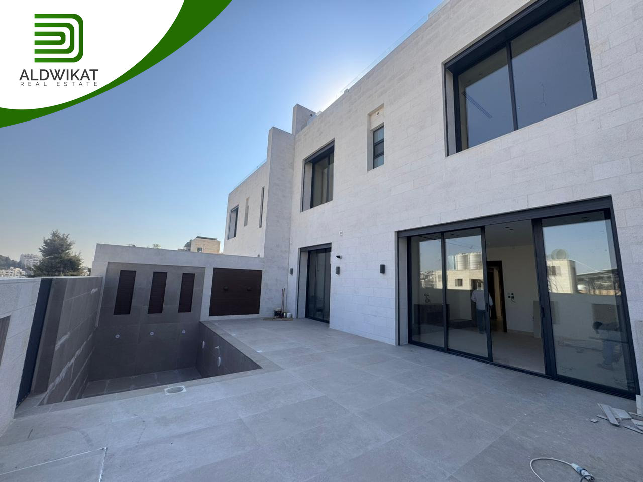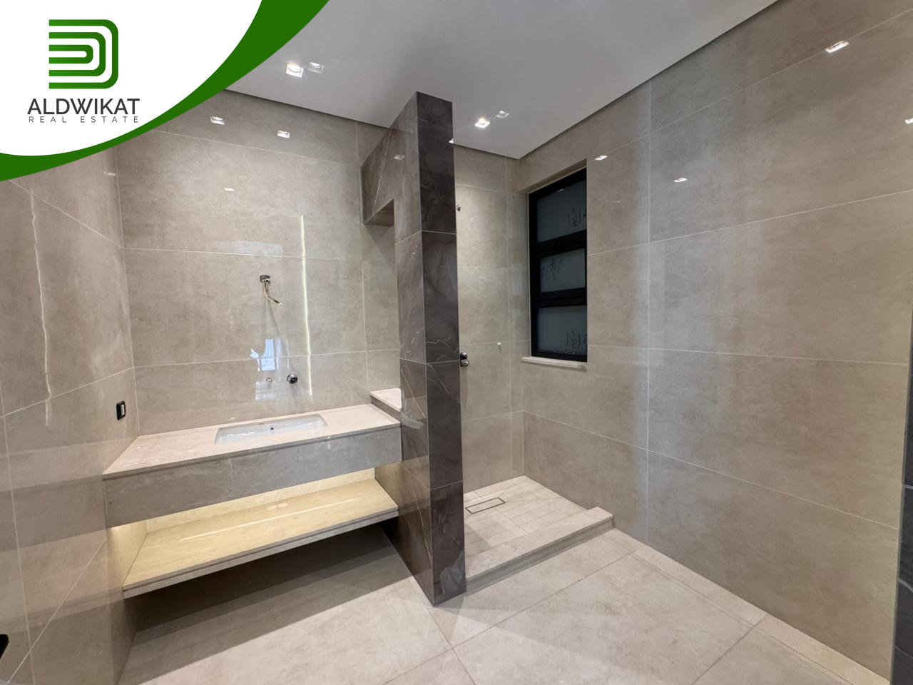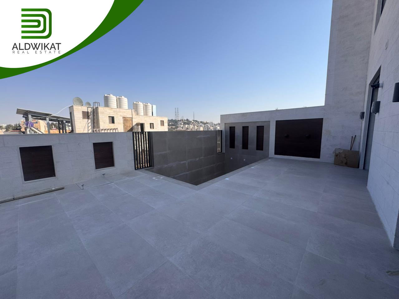 التشطيبات سوبر ديلوكس - نوع الارضيات ارخام + بورسلان - تدفئة غاز تحت البلاط - تكييف مركزي - حديقة - كراج خاص - اطلالة - بئر ماء - مصعد