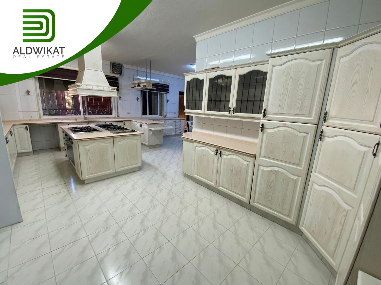 <p>Ground floor: main entrance - guest room - salon - living room - passenger kitchen - guest bathroom - master bedroom - a large garden with a diwaniya of 100 m marble floors - swimming pool - outdoor kitchen - pool decks - terraces - private garage that can accommodate 5 cars.</p>