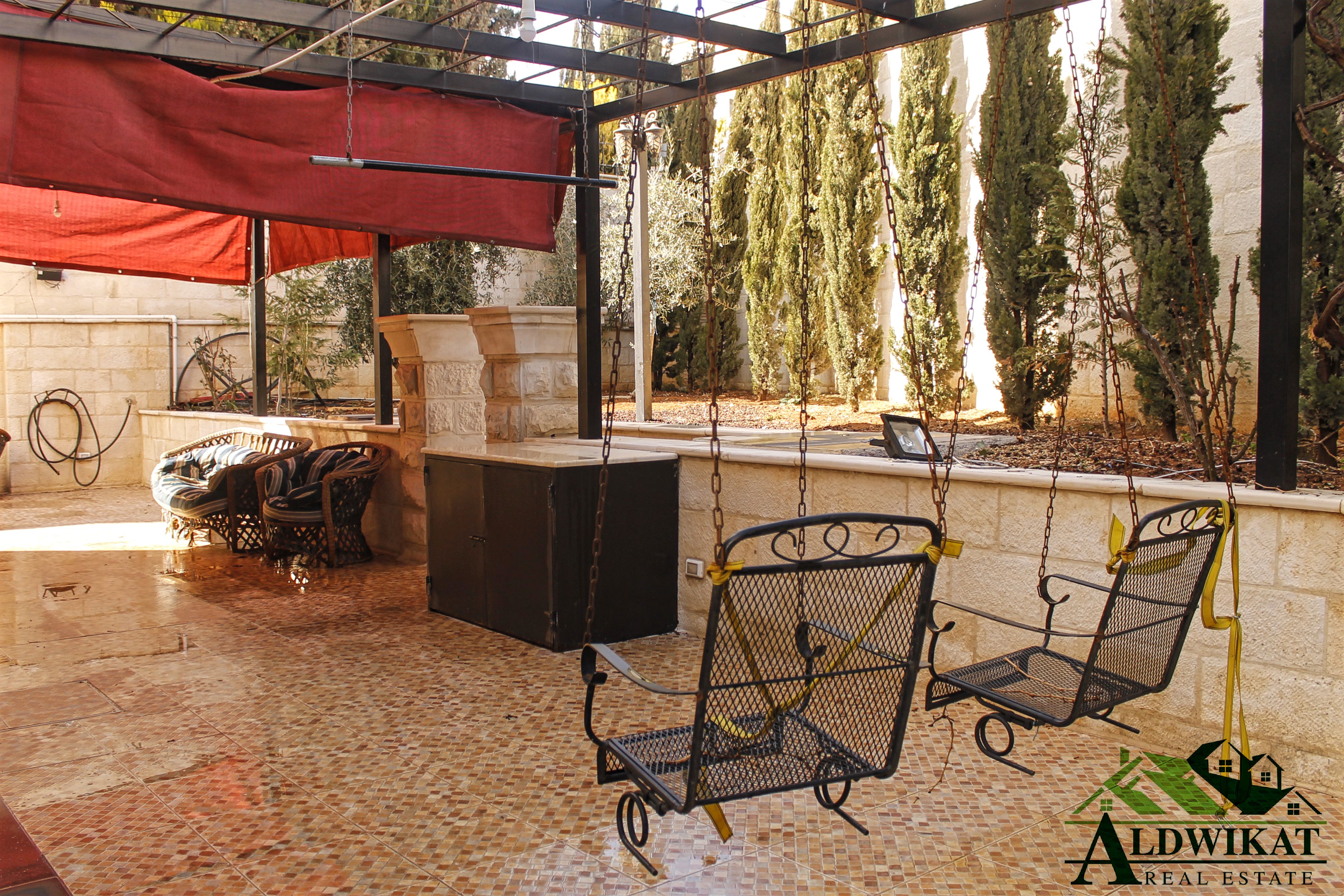 مكونة من 7 غرف نوم (2ماستر)و 3 صالون و 2 معيشة و 3 برندات و 3 مطابخ بالاضافة الى الحديقة و كراج مستقل , تتميز الفيلا بي ديكوراتها الحجرية و ديكورات الجبصين ونظام الانارة المخفية و السبوت لايت ,الفيلا محمية بالكاميرات ,مميزة بموقعها المطل القريب من الخدمات .