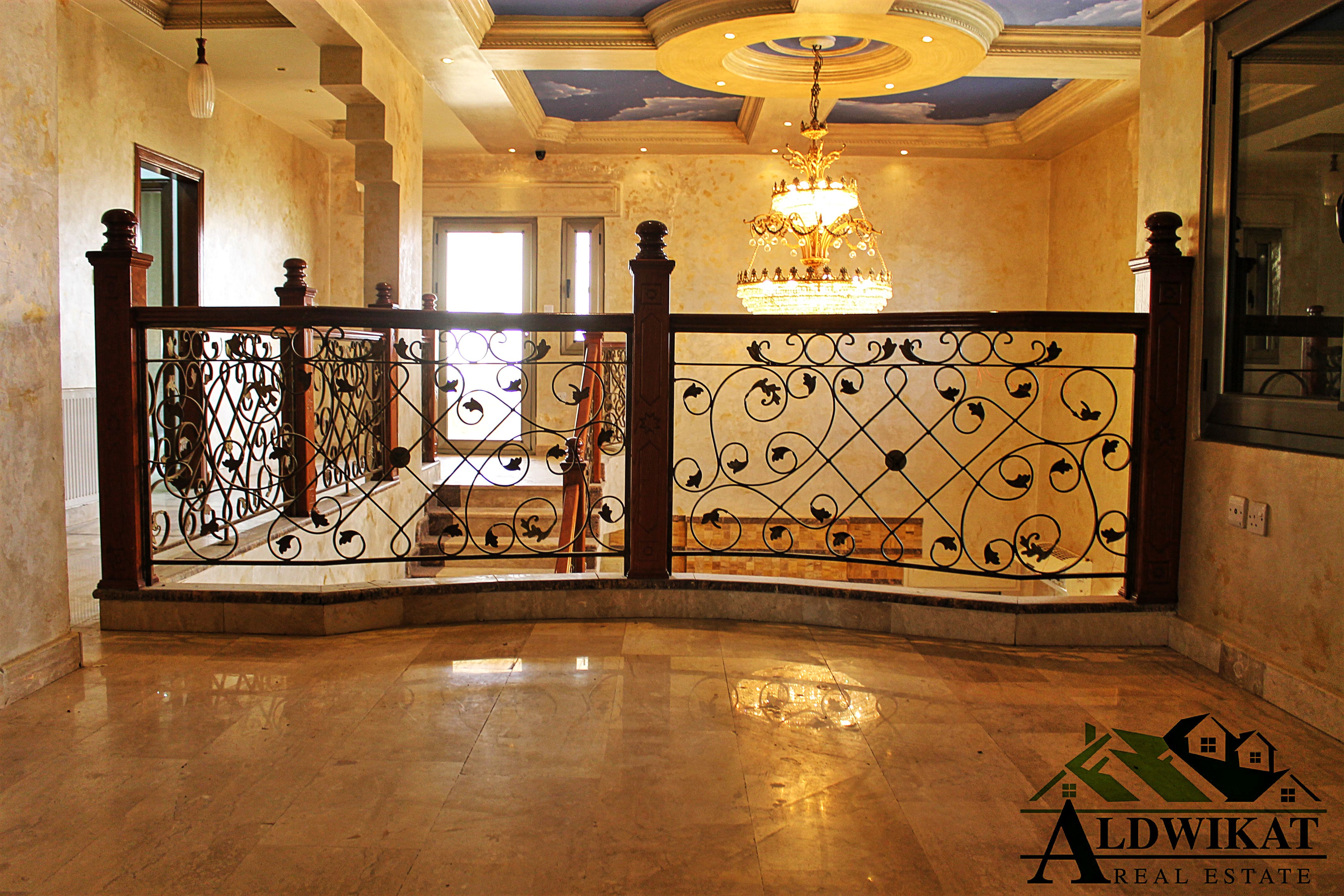 مكيفات 9 - جاكوزي - فاير بليس - ديكورات خشبية - ديكورات جبصين - اباجورات كهرباء - ارضيات رخام اورينتال + جرانيت - تدقئة غاز - انضمة حماية كاميرات - انارة سبوت لايت - دهان تطبيع - كراج سيارة خاص - شلال - نافورة - نهر - ترسات خارجية 2 - حديقة 300م - ابواب كراج كهرباء - مضلات - كراج 8 سيارات - بئر ماء 30م - 3 مداخل.