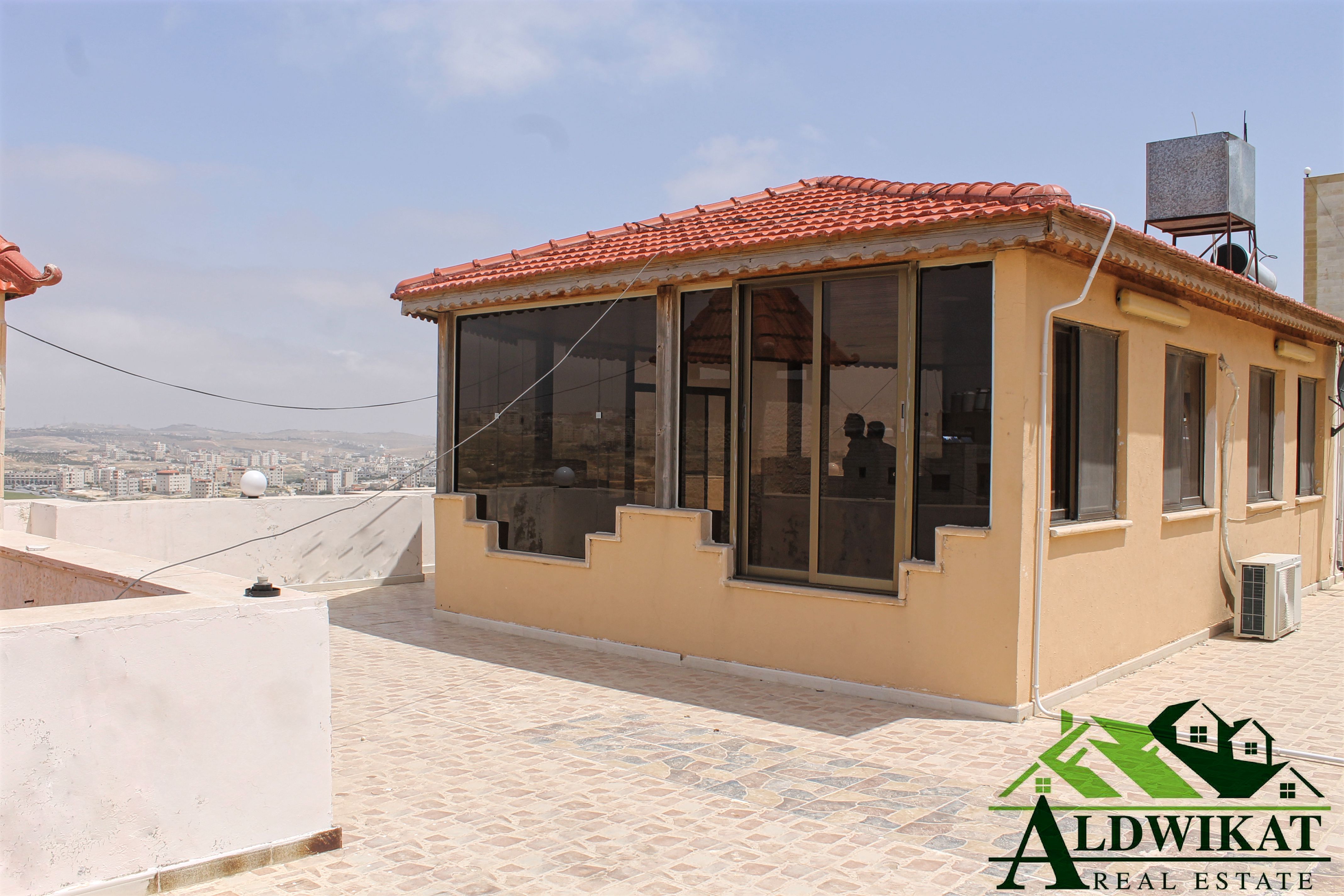 الارضي : صالون + معيشة + 2 نوم + حمام + مطبخ .