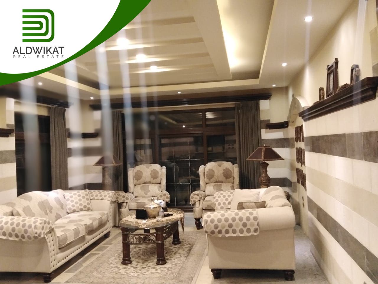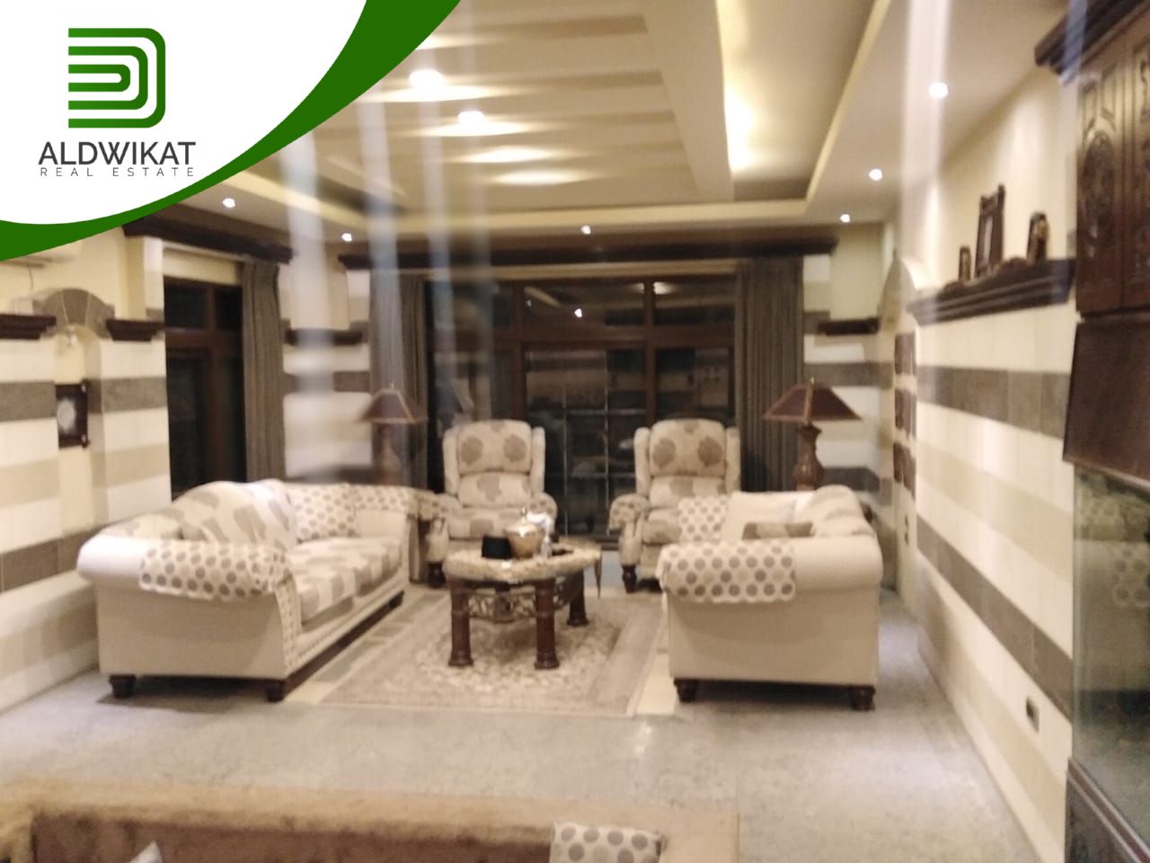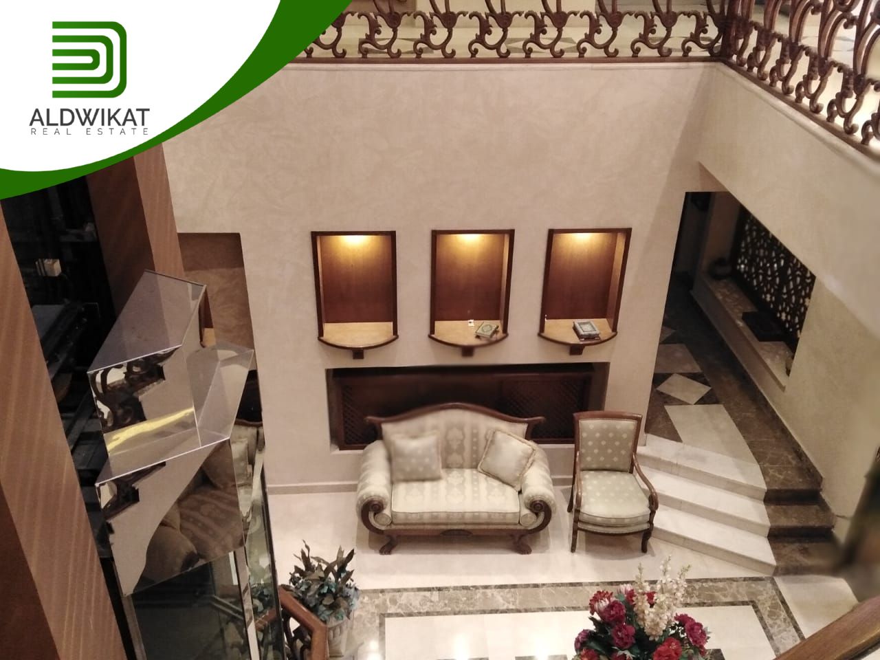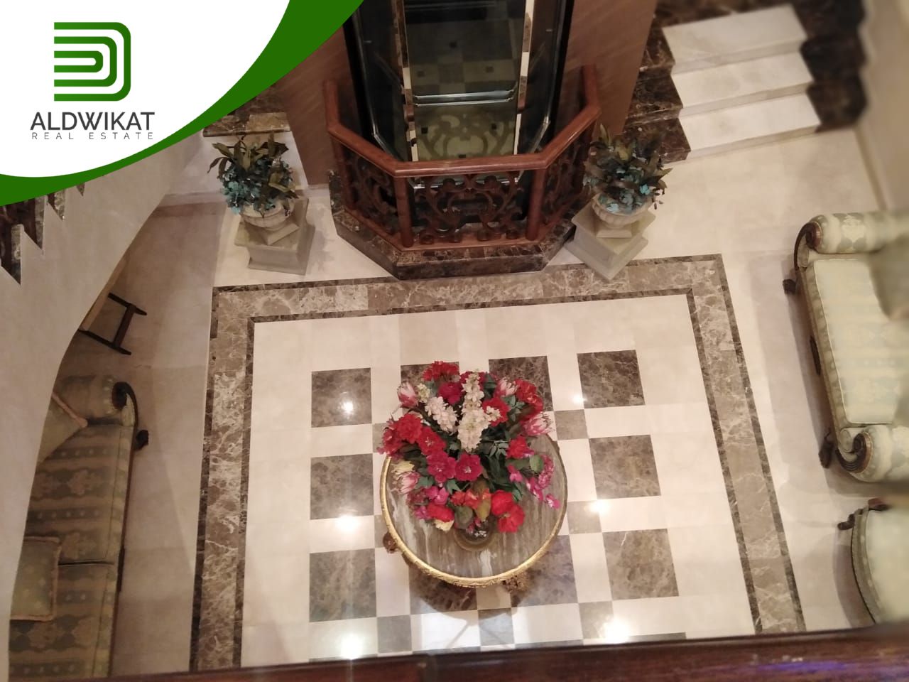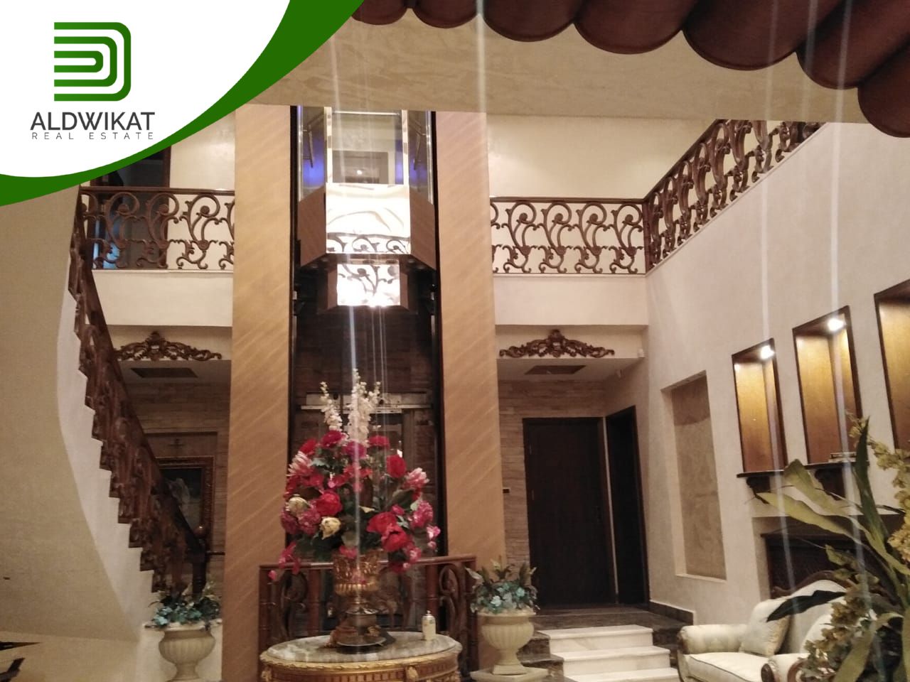 تشطيبات سوبر ديلوكس - ارضيات رخام - اباجورات كهربائية - 10 وحدات تكييف - تدفئة مركزية تحت البلاط بويلر - ديكورات جبصين و خشبية- انارة سبوت لايت و مخفية - انارة ثريات - Fire place - شاور بوكس - مصعد بانوراما داخلي - خزائن بالحائط - بئر ماء - باربيكيو خارجي - نوافير ماء - حدائق امامية جانبية و خلفية جمسلة - زجاج دبل - اطلالة عالية - منطقة هادئة - عدد المداخل 3 - غرفة حارس مع حمام .