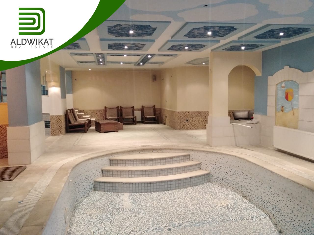 طابق التسوية : مسبح داخلي - جاكوزي - غرفة بخار - غرفة ساونا مع حمام - صالون - مطبخ خدمات - شاورات - مستودع - غرفة خادمة مع حمامها - غرفة غسيل