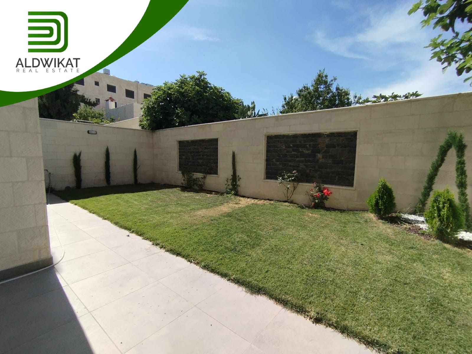 شقة للبيع في الكرسي الجندويل طابق شبه ارضي مساحة البناء 180 م مساحة الحديقة والترس 120 م