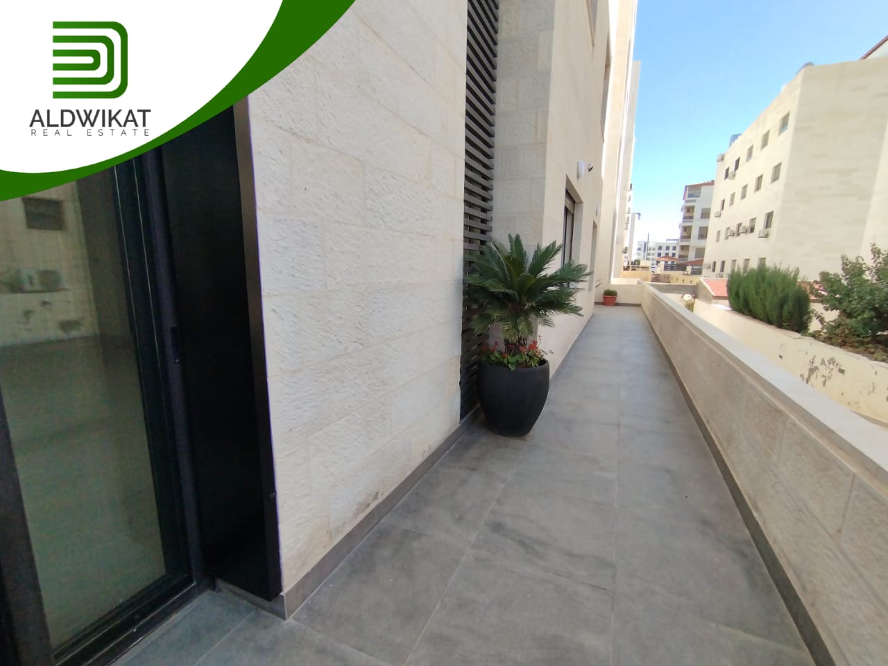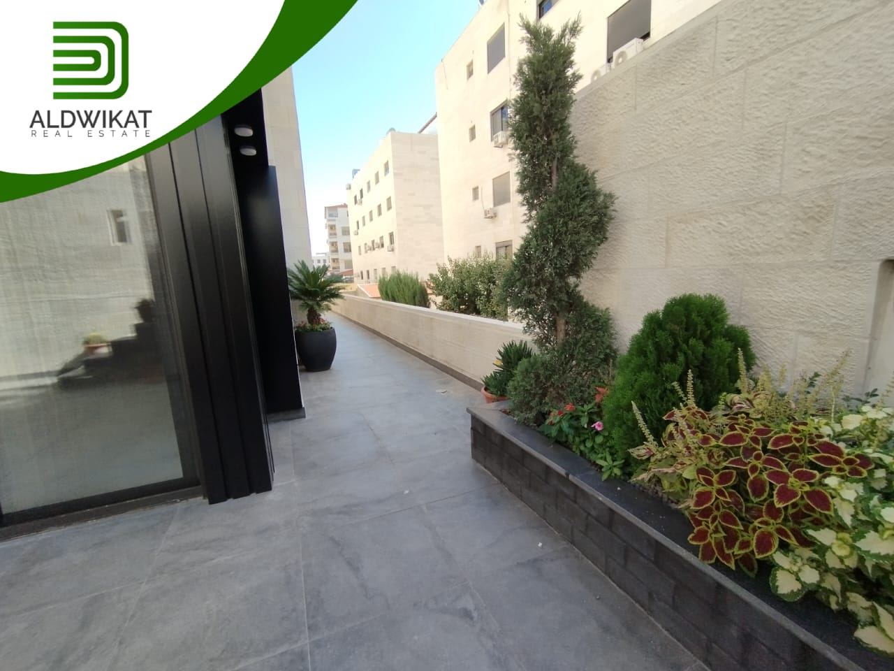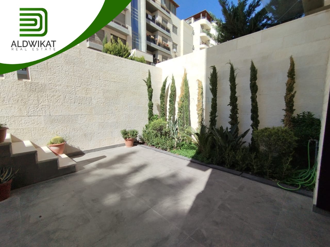 شقة للبيع في خلدا طابق شبه ارضي مساحة البناء 105م ومساحة الترس 55م