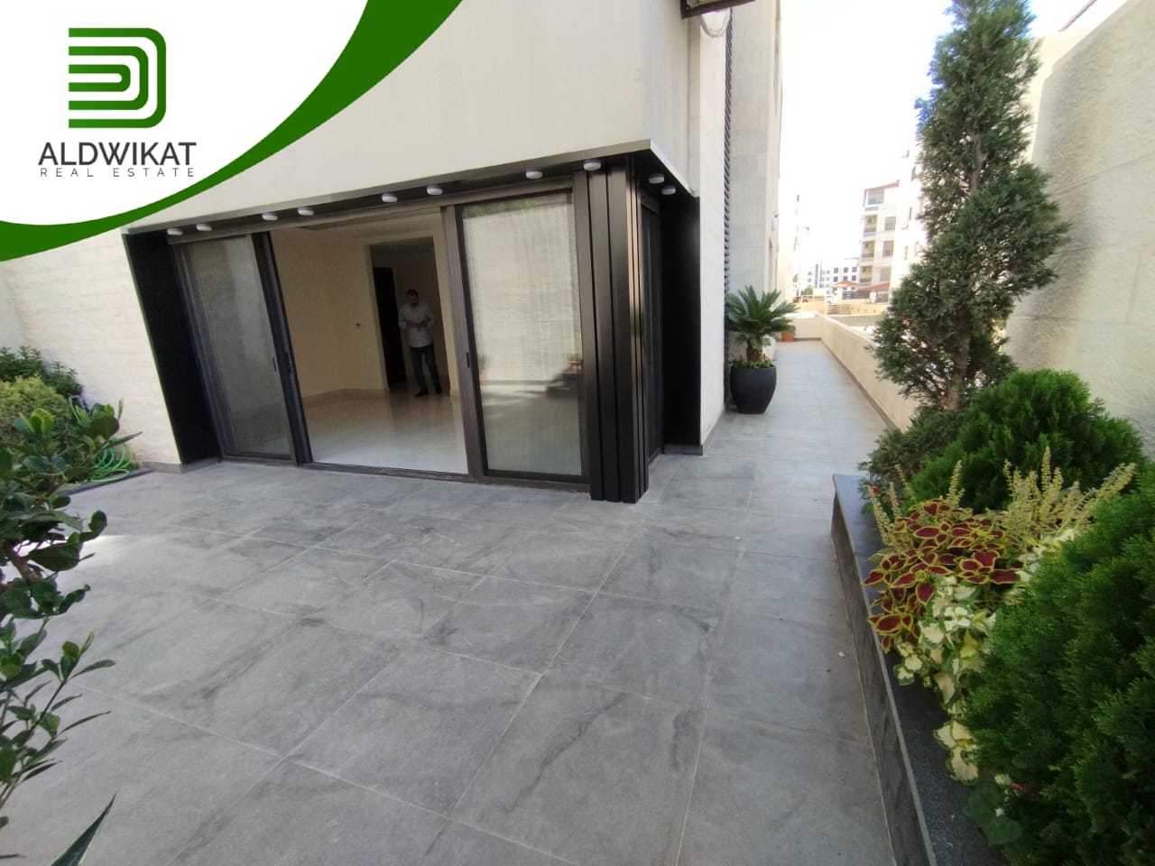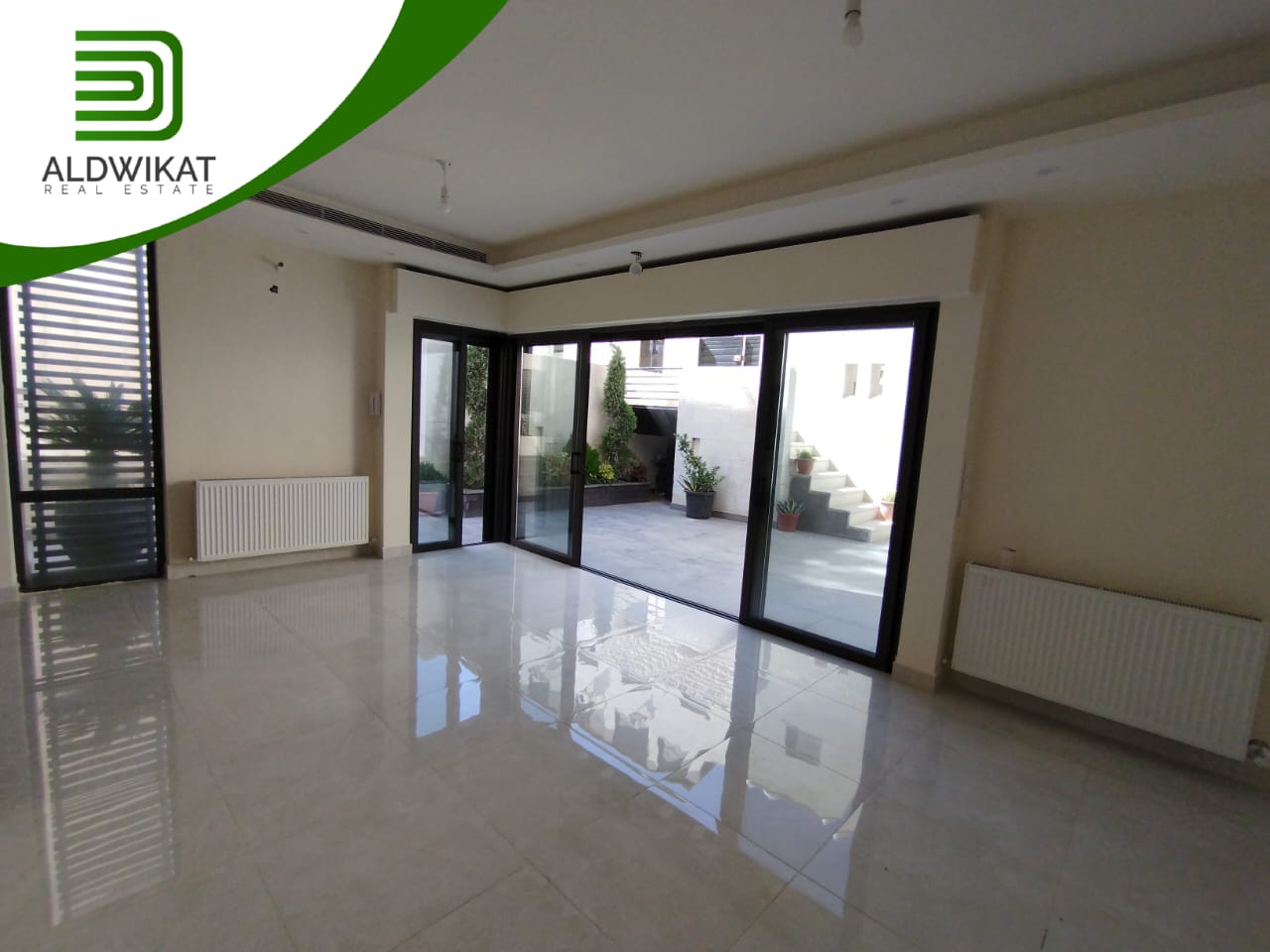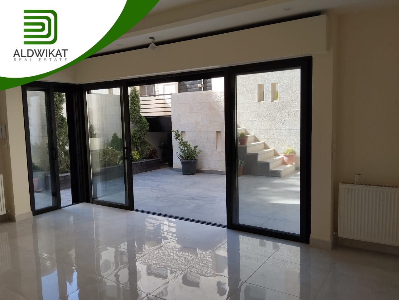 شقة للبيع في خلدا طابق شبه ارضي مساحة البناء 105م ومساحة الترس 55م