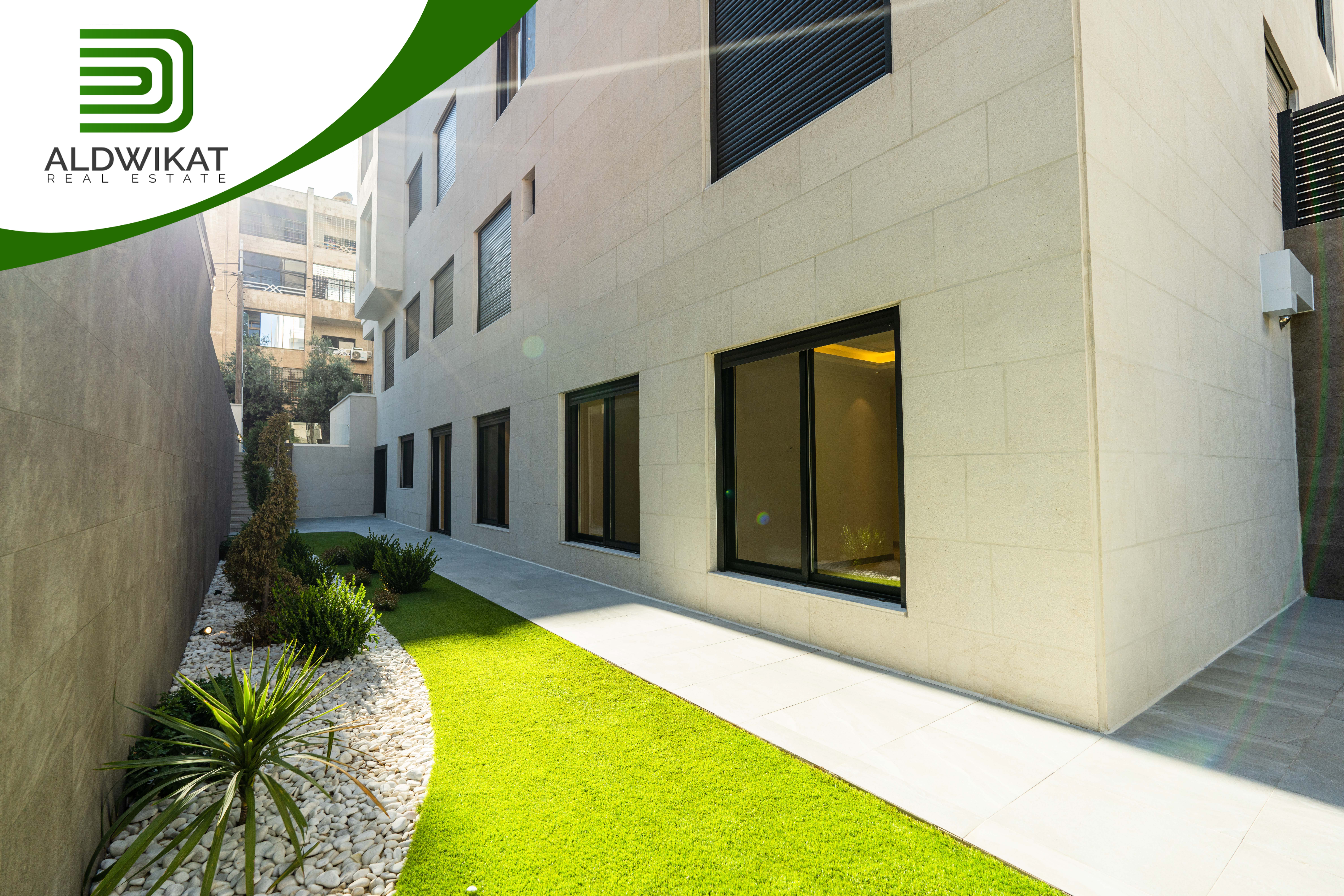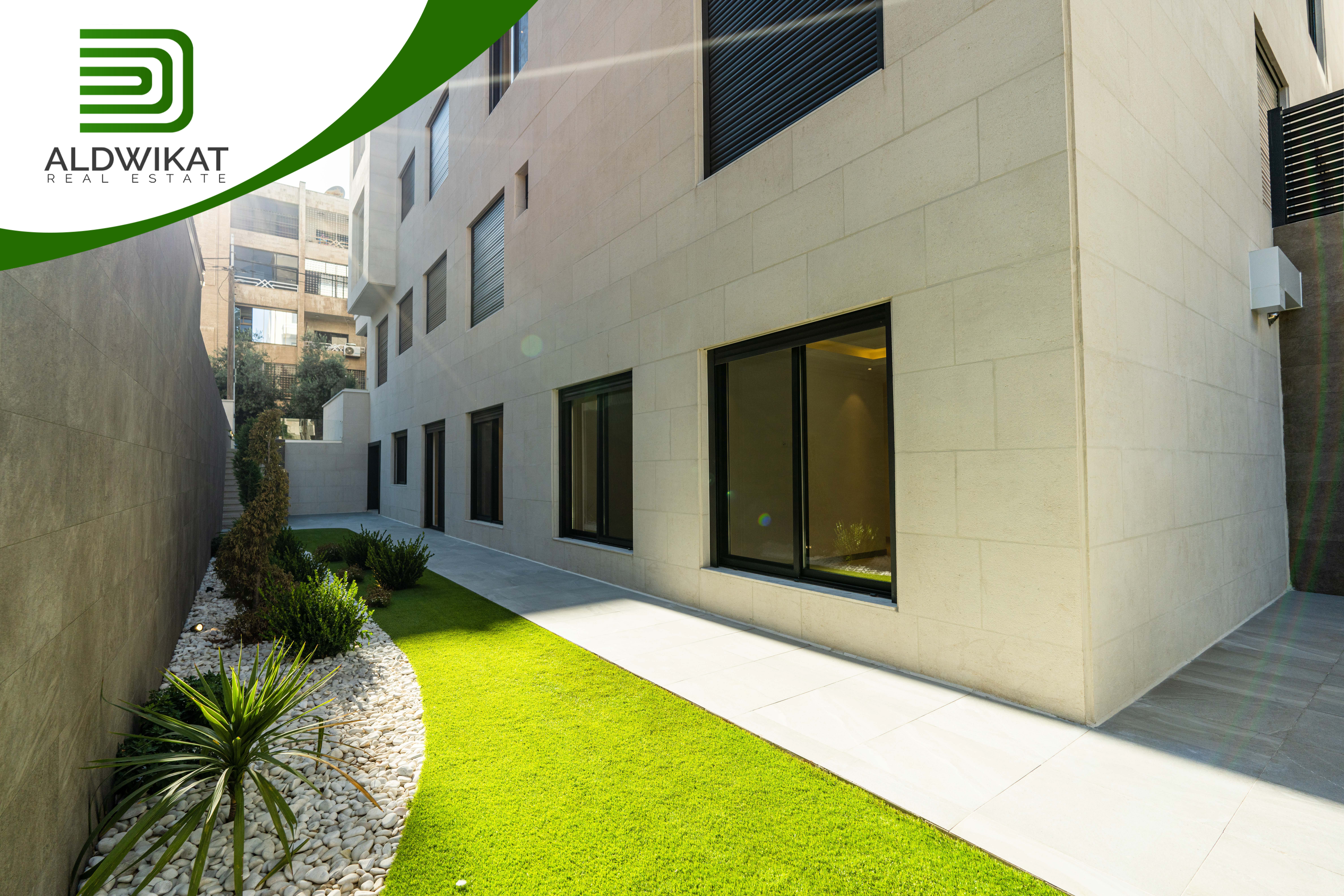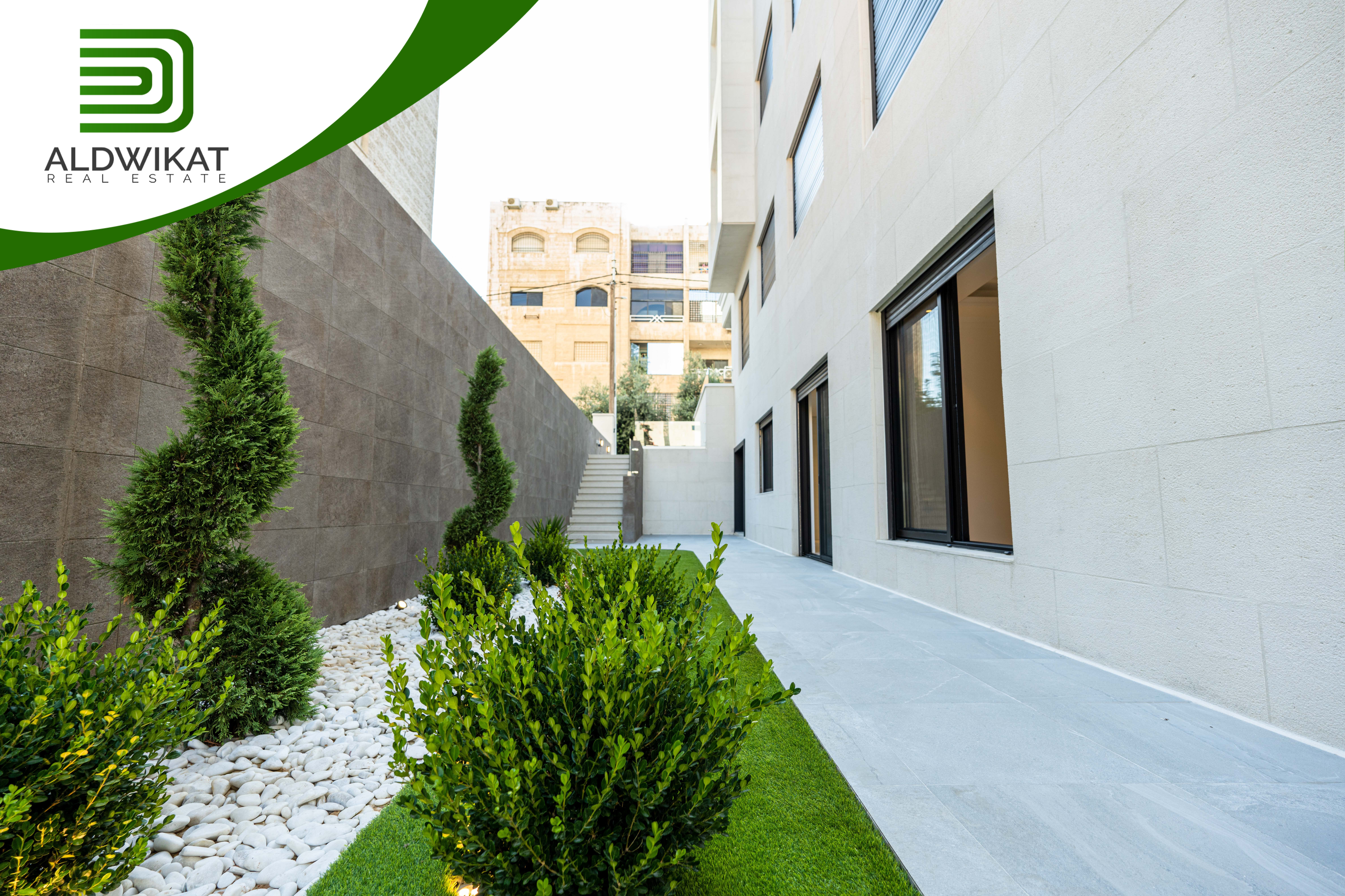 شقة للبيع في عبدون طابق شبه ارضي مساحة البناء 160م ومساحة الحديقة 130م