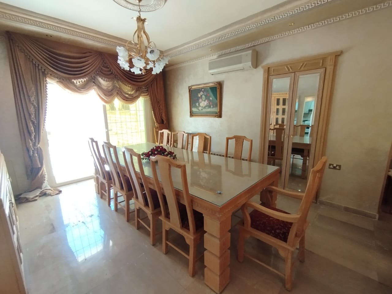 التشطيبات جيدة جدا - نوع الارضيات ارخام - التدفئة ديزل - مكيفات - ترس - كراج خاص - اطلالة - مسبح - مستقلة - حديقة - خزائن بالحائط